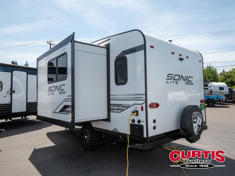 With any Sonic Lite travel trailer by Venture RV, you begin with Next Generation in RV frame technology with the NXG frame, AZDEL Onboard composite panels, tongue and groove plywood floor decking, and a tucked rear bumper. The Fall Package 1.6 provides a motion light in the bathroom, a deep round stainless steel sink with cover in the kitchen, and the JBL Flip Bluetooth Speaker which allows you to use smartphone technology in the RV, plus a lighted power tongue jack, and WIFI prep to mention a few features. Get ready for comfort and style in a Sonic Lite ultra-lightweight, single-axle travel trailer of your choice!