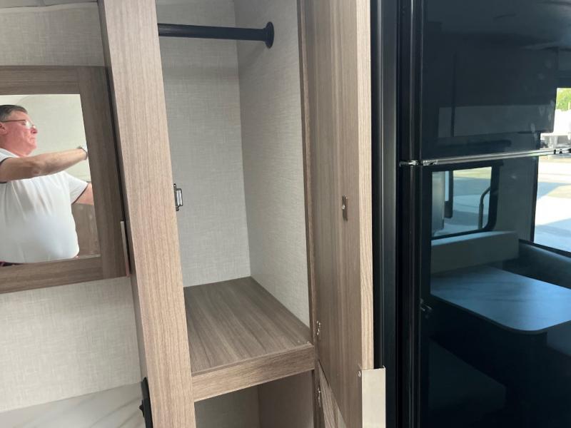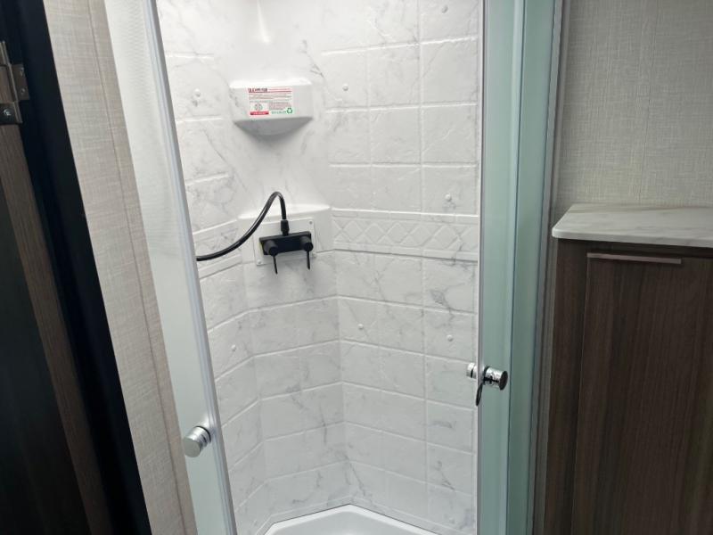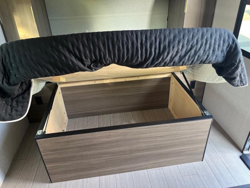 What I liked most: what we liked the most on this camper were two things first was the full bathroom very roomy and it had the regular queen bed on the other end of the RV.