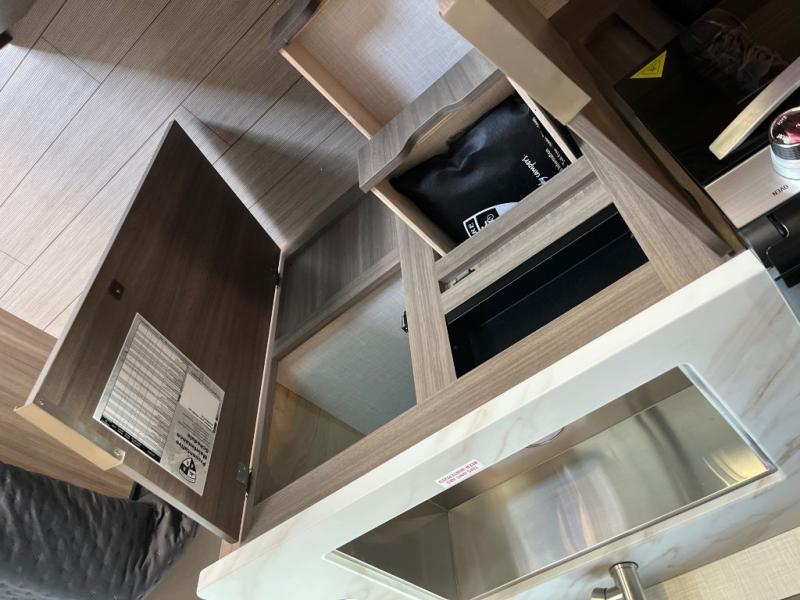 What I liked most: we like that it has the full size rear bath, and the queen bed to the right as you walk in to the Camper. lotes of cupboard pace.