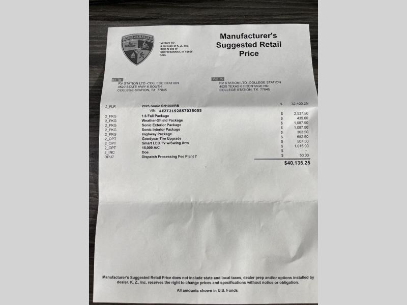 New 2025 Venture RV Sonic SN190VRB Travel Trailer