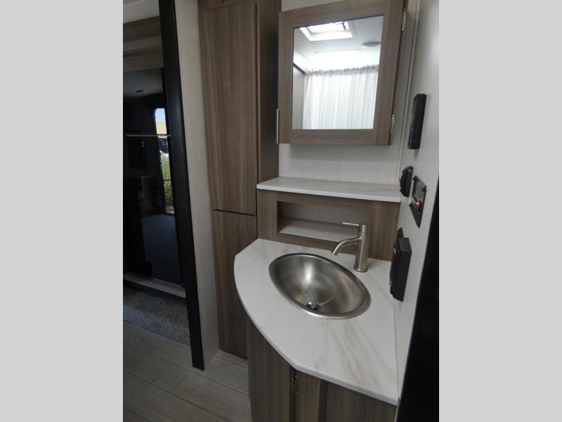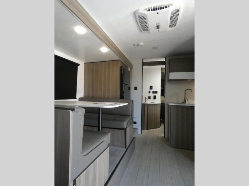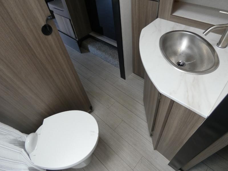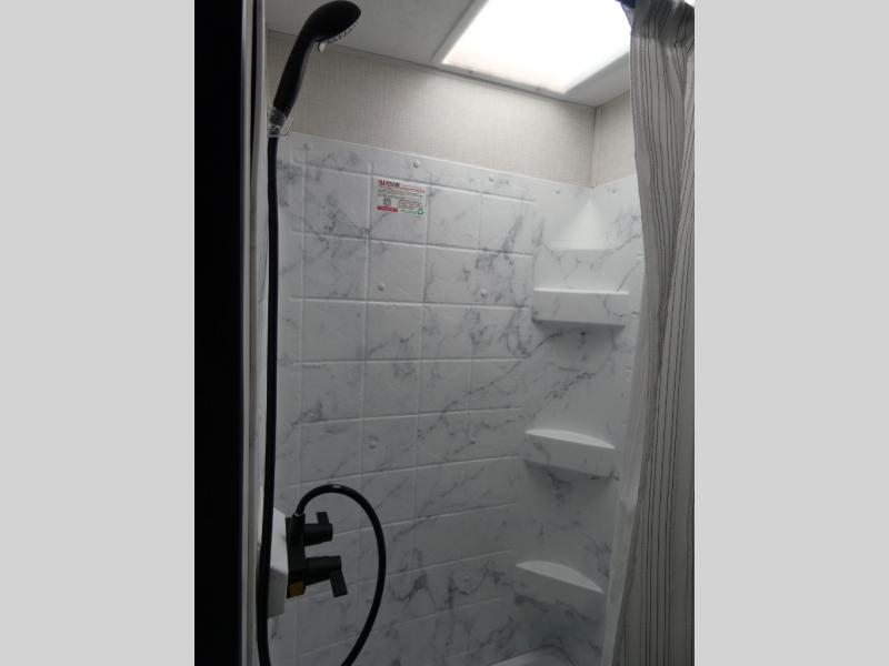 Looking for privacy when you camp? Do you enjoy dining at a booth dinette when you are staying in an RV? This Sonic provides all of that plus more! Starting with the private bedroom with an RV queen bed, StorMore bedside nightstands with a 110V outlet and USB charging to keep the electronics ready, dual wardrobes, and access to the walk-through bathroom through a space savings sliding door. The second entry to the walk-through bath is in the main living and kitchen area where you will find a booth dinette and an 8 cu. ft. refrigerator, an L-shaped countertop with a large sink and kitchen amenities, plus an entertainment center and a 64" jiffy sofa. And the furniture doubles as extra sleeping space when needed. Don't forget about the 17' power awning offering an outdoor living area, just add your camp chairs.