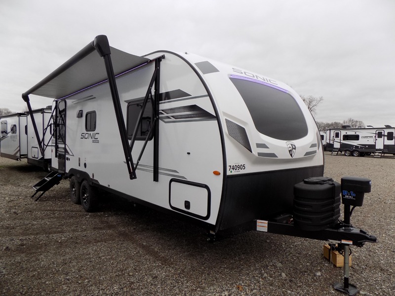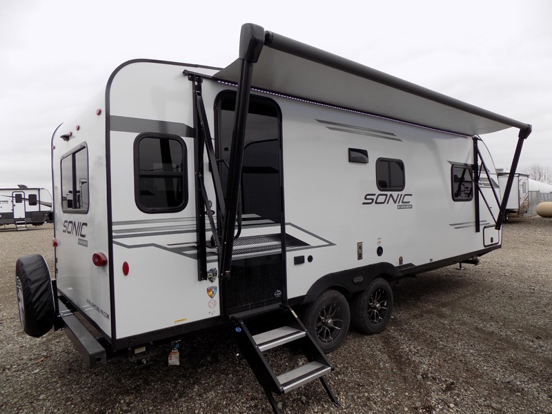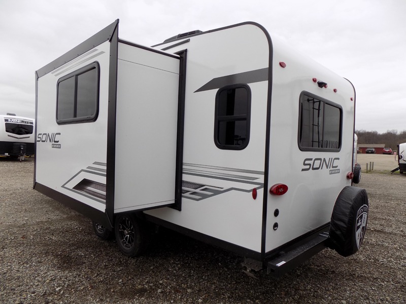 With any Sonic travel trailer by Venture RV, you begin with Next Generation in RV frame technology with the NXG Huck-bolt frame, AZDEL Onboard composite panels, tongue and groove plywood floor decking, radiant foil bubble insulation-wrapped tanks, 360-degree residential fiberglass insulation and radiant foil insulation, plus a forced-air heated and enclosed underbelly which is part of the Weather-Shield package. There is a Highway Package that comes mandatory, and the Fall Package 1.6 provides a motion light in the bathroom, a dish drying sink cover, a power tongue jack, and WIFI prep to mention a few features. Get ready for comfort and style in a Sonic ultra-lightweight, tandem-axle travel trailer of your choice!