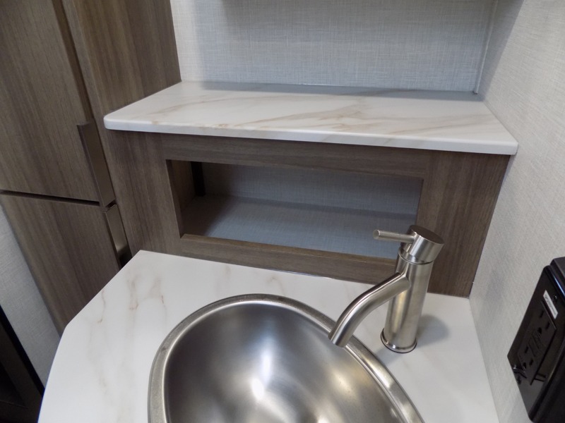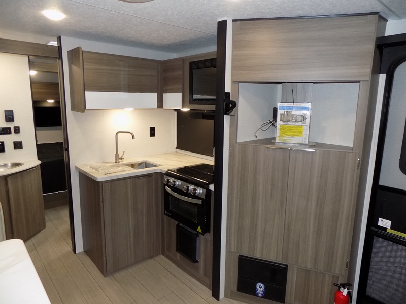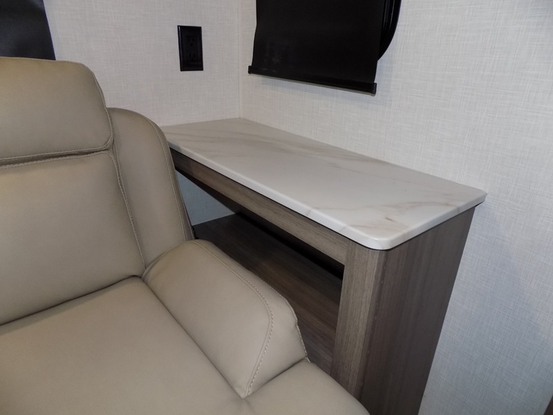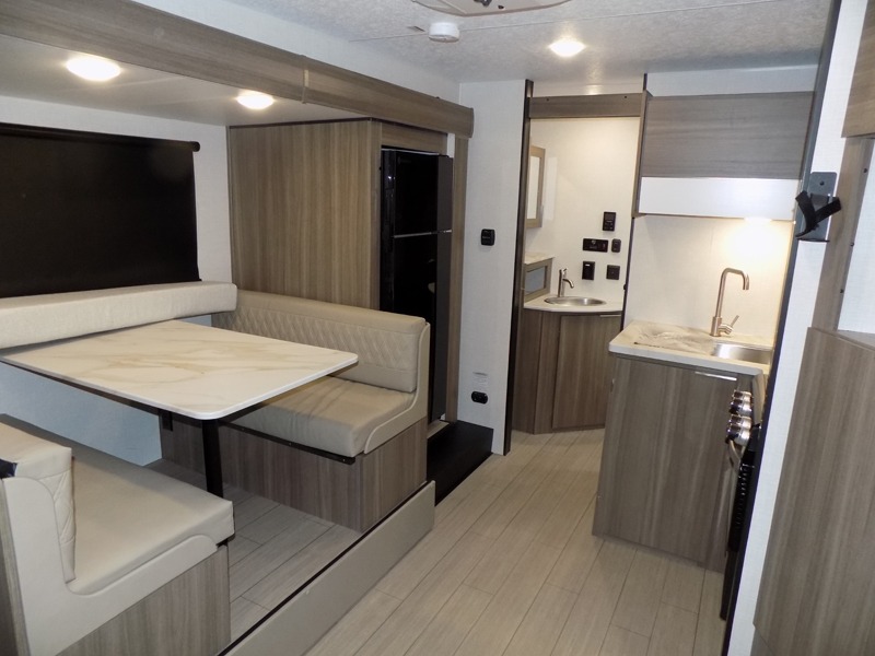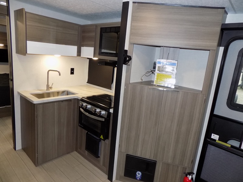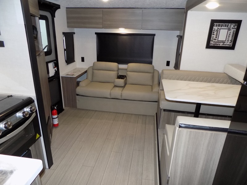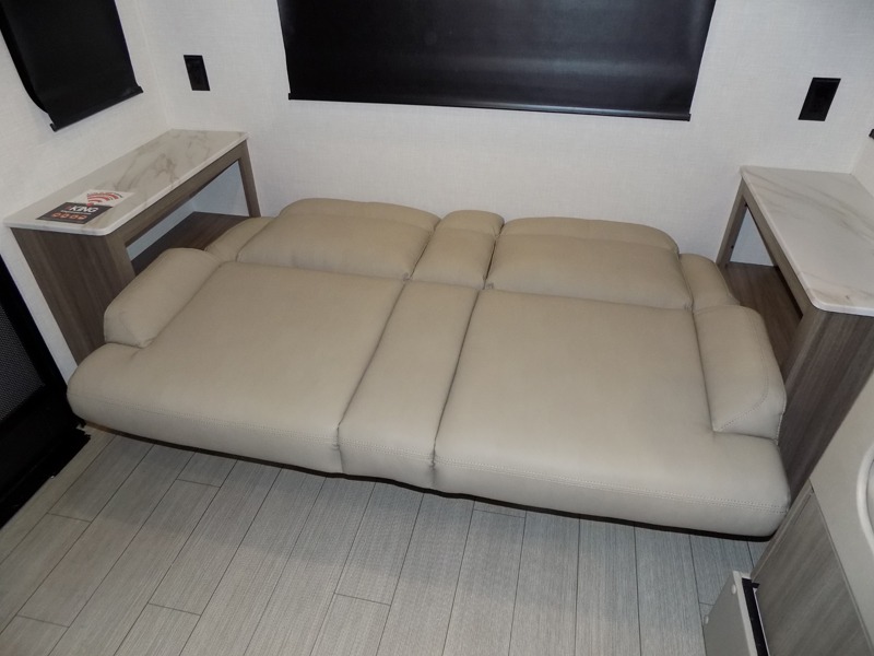 Looking for privacy when you camp? Do you enjoy dining at a booth dinette when you are staying in an RV? This Sonic provides all of that plus more! Starting with the private bedroom with an RV queen bed, StorMore bedside nightstands with a 110V outlet and USB charging to keep the electronics ready, dual wardrobes, and access to the walk-through bathroom through a space savings sliding door. The second entry to the walk-through bath is in the main living and kitchen area where you will find a booth dinette and an 8 cu. ft. refrigerator, an L-shaped countertop with a large sink and kitchen amenities, plus an entertainment center and a 64" jiffy sofa. And the furniture doubles as extra sleeping space when needed. Don't forget about the 17' power awning offering an outdoor living area, just add your camp chairs.