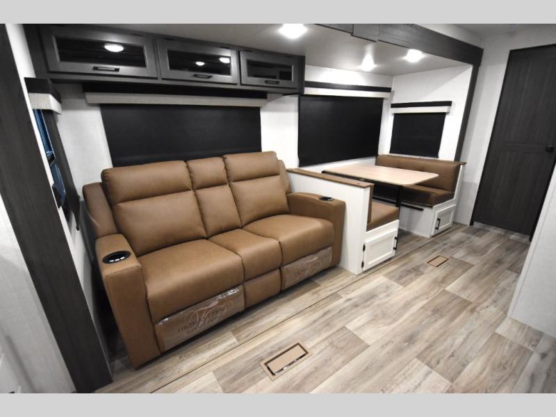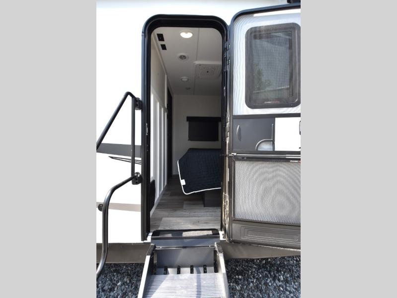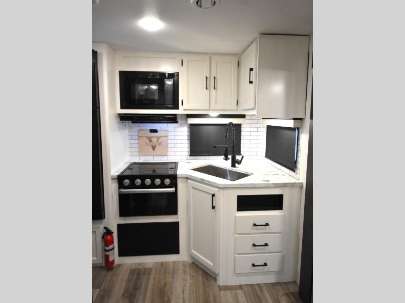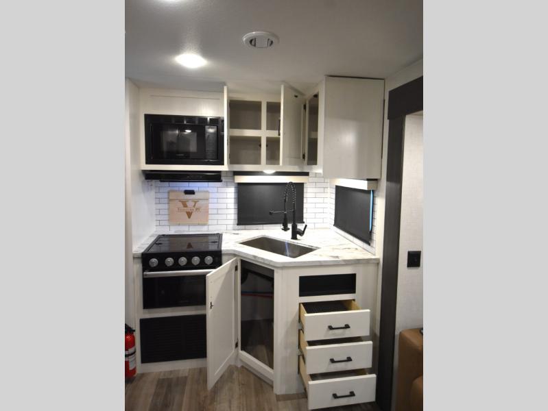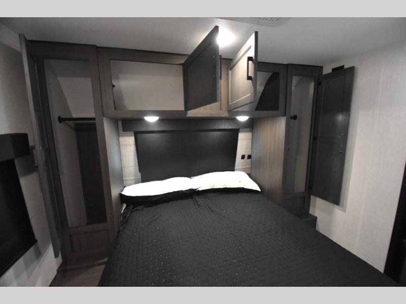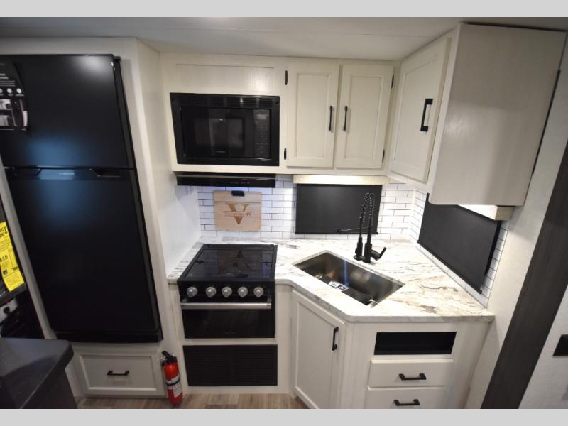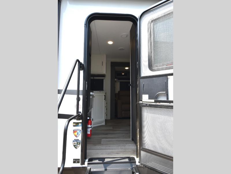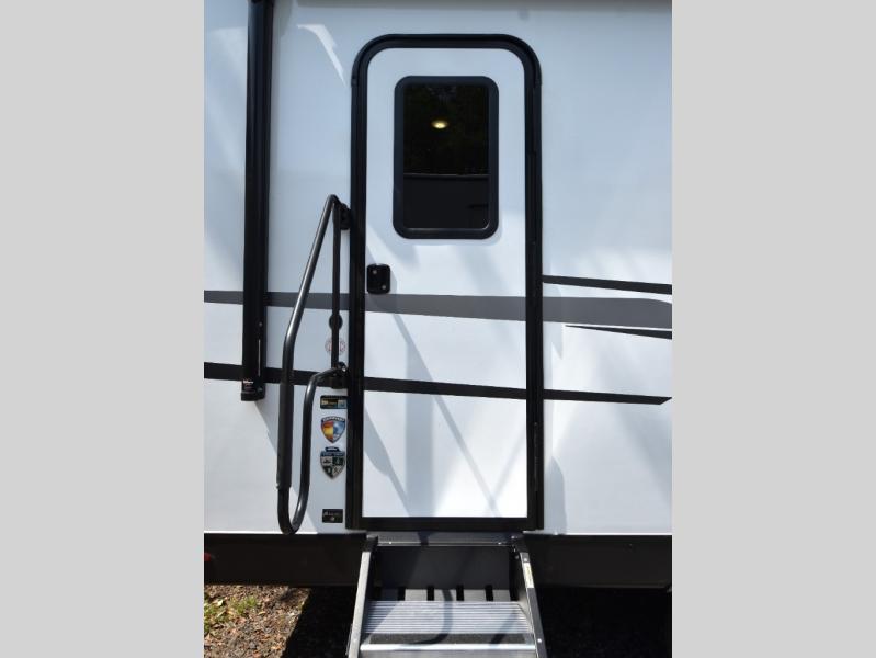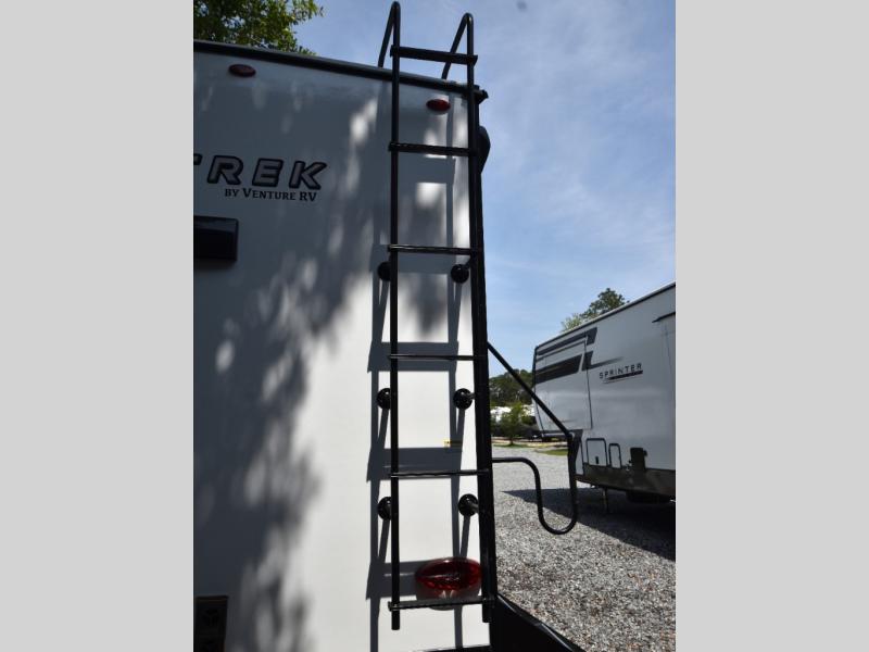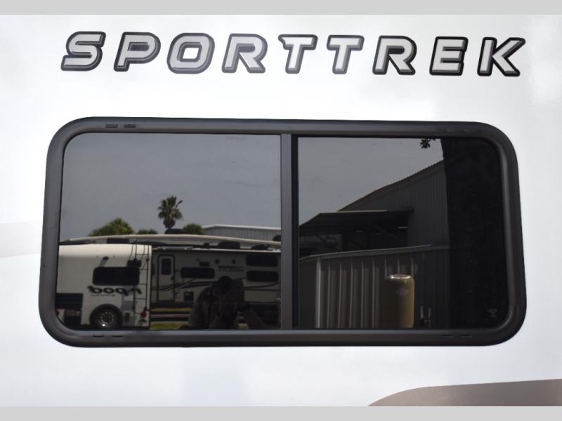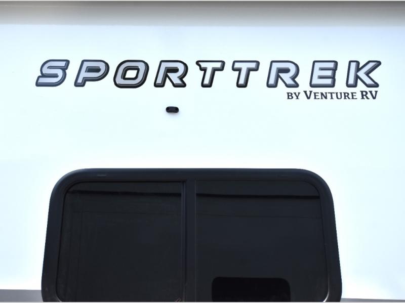 Every Venture RV SportTrek lightweight travel trailer is constructed to offer peace of mind and the comforts of home! Their purposeful residential kitchens are packed with handy features like a Furrion oven and three burner cooktop, a large stainless steel sink with a cover and dish drying rack, plus a 12V refrigerator. You will find plenty of storage throughout, including Safe-Tek hidden storage with a charging center and StorMore nightstands on either side of the bed behind the full-length closets. And the magnetic slam-latch baggage doors and spacious pass-through storage area will hold your outdoor gear in place. They even come with a hot and cold exterior shower and SporTrek's Weather Shield which includes a forced air heated and enclosed underbelly, high output A/C ducting, and more features that will let you extend your camping season. You will also love the new residential upgraded furniture, Serta memory foam mattress, barn style passage doors, and many more comforts!