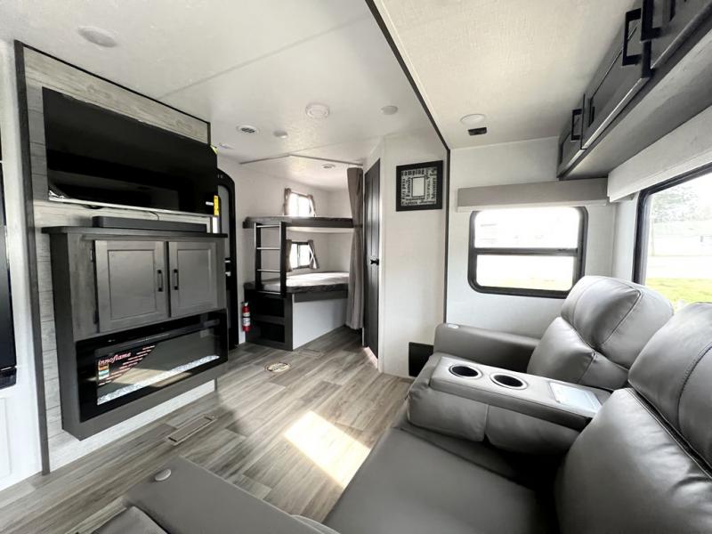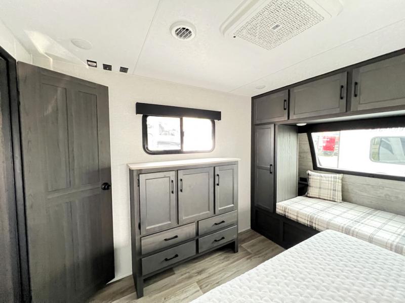 Spacious Bunkhouse Layout – Perfect for families or groups, the 292VBH sleeps up to 10 with double-over-double rear bunks, a queen-sized master bed, and a convertible dinette and sofa.