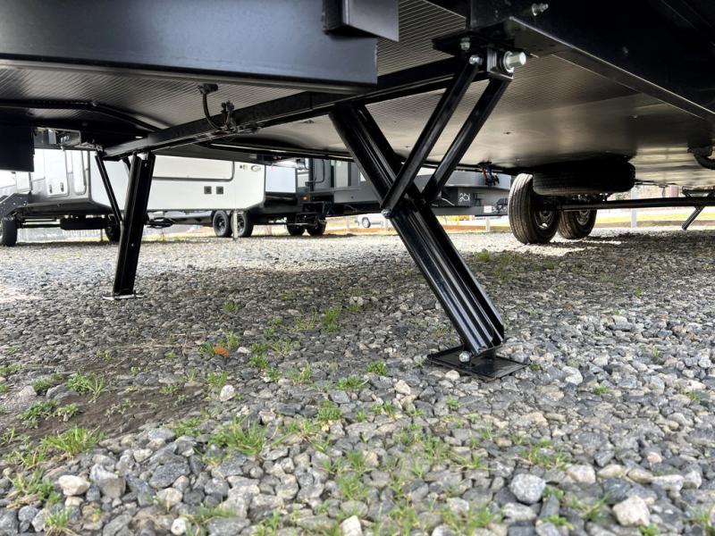 Pass-through storage, power tongue jack, power awning with LED lighting, and LCI Solid Steps for easy entry.
