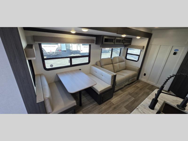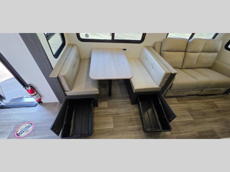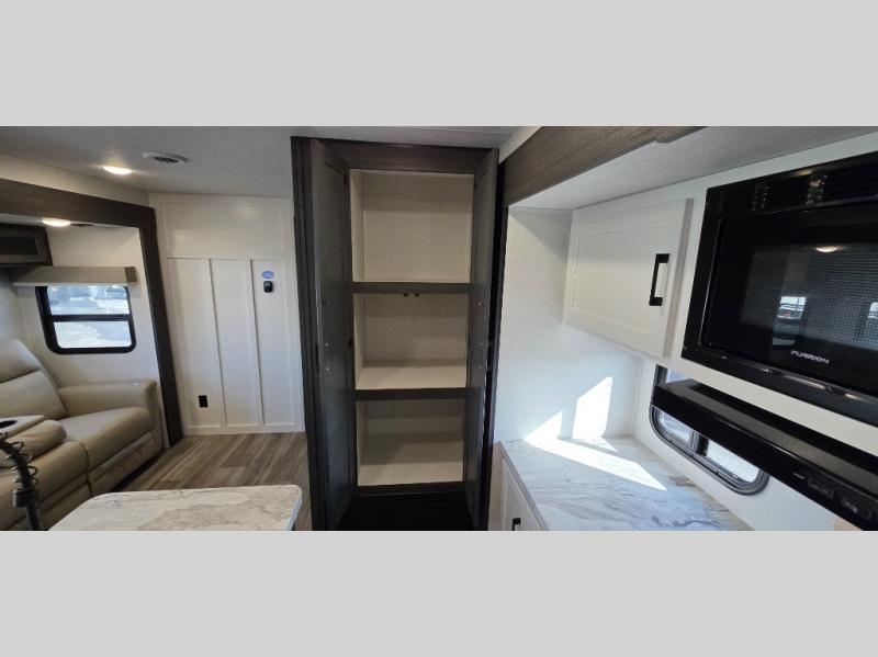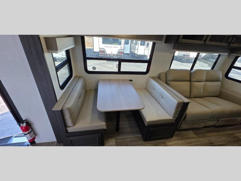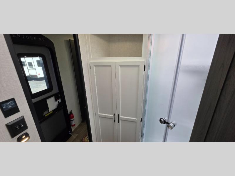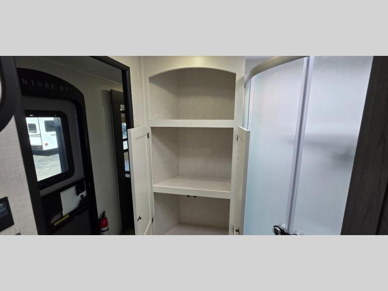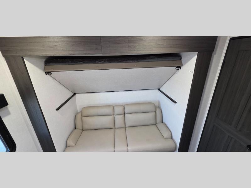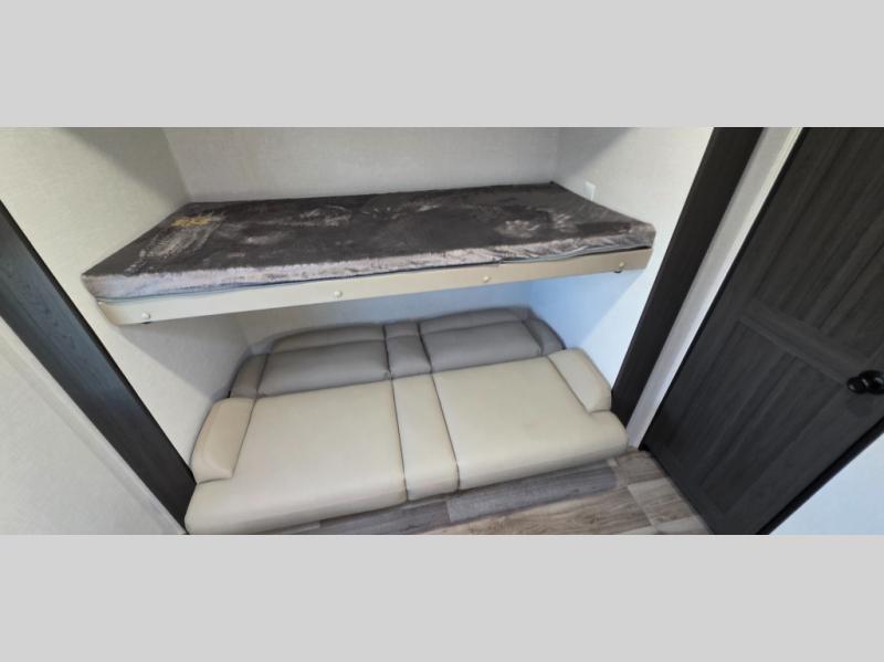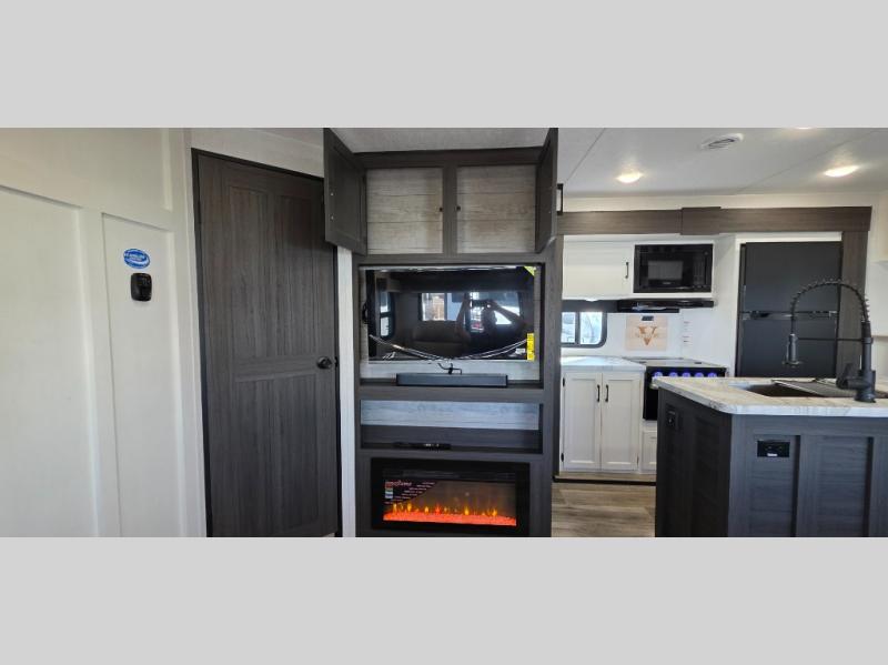 Enjoy the convenience of a dual-entry bathroom, making it easy for everyone to freshen up. The 34" radius shower is perfect for relaxing after a day of exploring, and its accessibility from both the front private bedroom and main living area adds a new level of convenience.