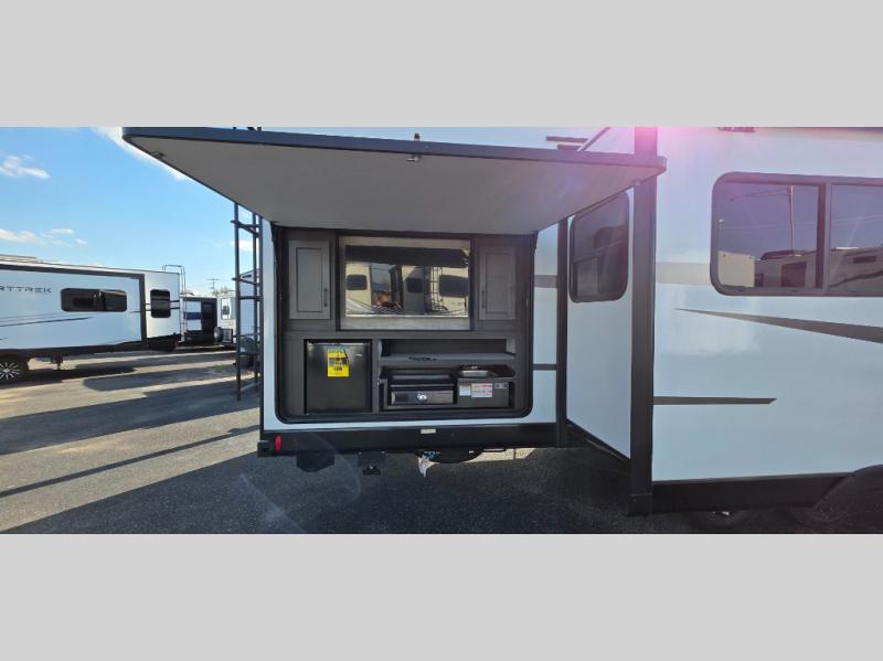 Rear bunkhouse, outside kitchen, and private king suite—the 2025 Venture RV SportTrek 327VIK is built for family fun and comfort! Explore yours today at Campers Inn RV!