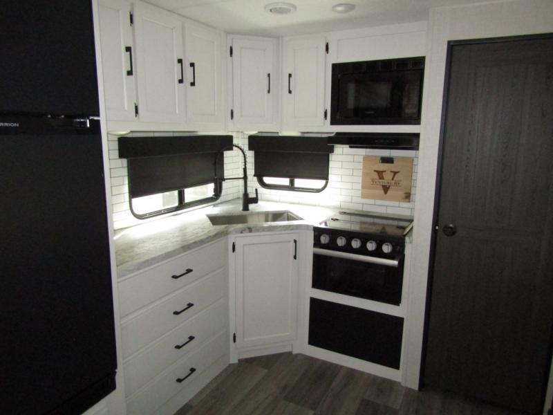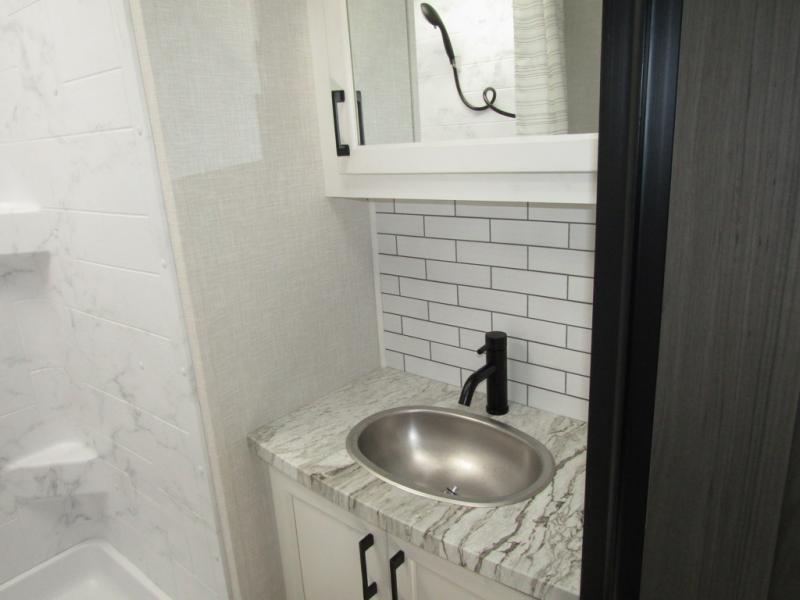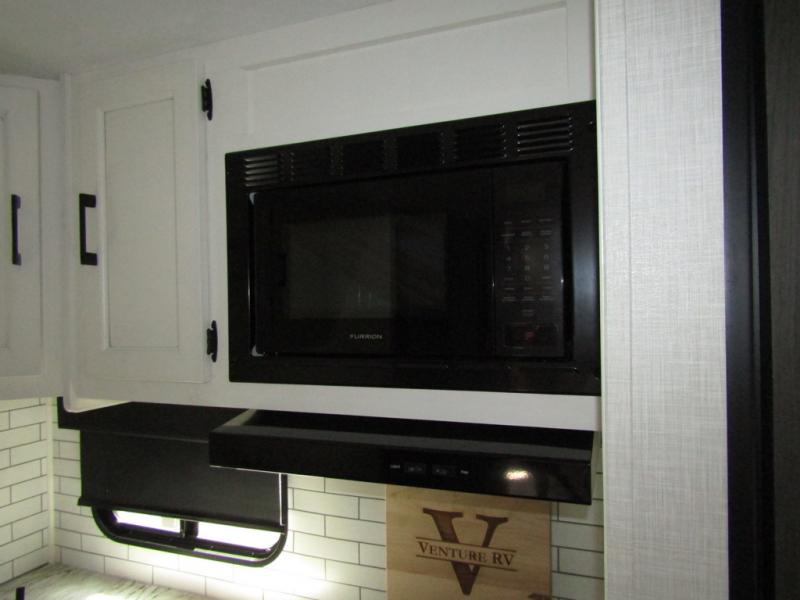 Every Venture RV SportTrek lightweight travel trailer is constructed to offer peace of mind and the comforts of home! Their purposeful residential kitchens are packed with handy features like a Furrion oven and three burner cooktop, a large stainless steel sink with a cover and dish drying rack, plus a 12V refrigerator. You will find plenty of storage throughout, including Safe-Tek hidden storage with a charging center and StorMore nightstands on either side of the bed behind the full-length closets. And the magnetic slam-latch baggage doors and spacious pass-through storage area will hold your outdoor gear in place. They even come with a hot and cold exterior shower and SporTrek's Weather Shield which includes a forced air heated and enclosed underbelly, high output A/C ducting, and more features that will let you extend your camping season. You will also love the new residential upgraded furniture, Serta memory foam mattress, barn style passage doors, and many more comforts!