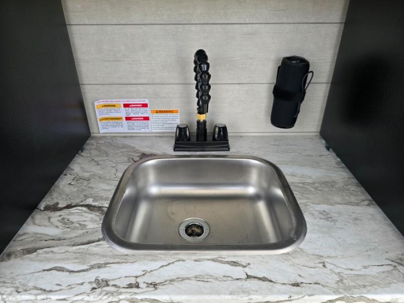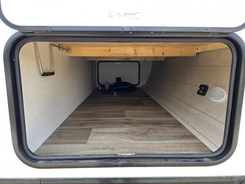 Every Venture RV SportTrek lightweight travel trailer is constructed to offer peace of mind and the comforts of home! Their purposeful residential kitchens are packed with handy features like a Furrion oven and three burner cooktop, a large stainless steel sink with a cover and dish drying rack, plus a 12V refrigerator. You will find plenty of storage throughout, including Safe-Tek hidden storage with a charging center and StorMore nightstands on either side of the bed behind the full-length closets. And the magnetic slam-latch baggage doors and spacious pass-through storage area will hold your outdoor gear in place. They even come with a hot and cold exterior shower and SporTrek's Weather Shield which includes a forced air heated and enclosed underbelly, high output A/C ducting, and more features that will let you extend your camping season. You will also love the new residential upgraded furniture, Serta memory foam mattress, barn style passage doors, and many more comforts!