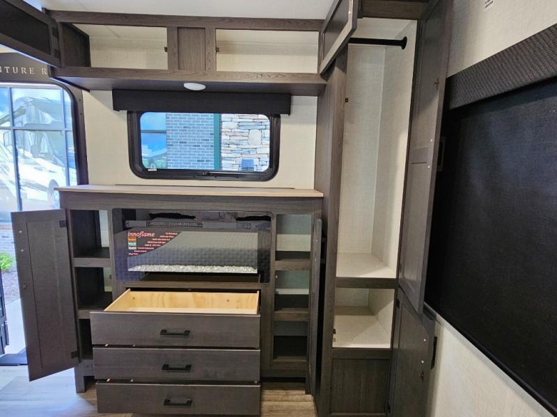 If you're looking for a travel trailer that brings true residential comfort to the campsite, the 2025 SportTrek Touring Edition STT333VFK is your perfect match. From dual fireplaces to a stunning front kitchen, this coach is designed to elevate your camping lifestyle.