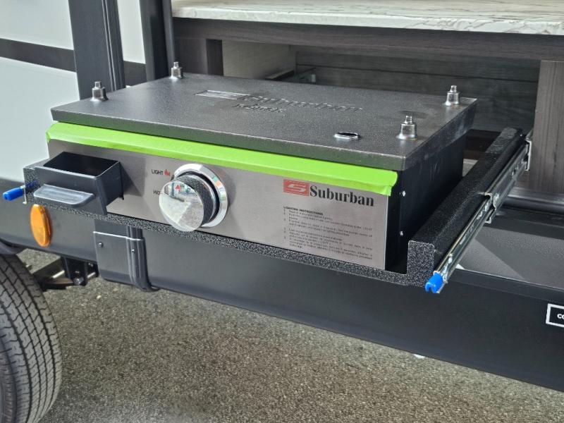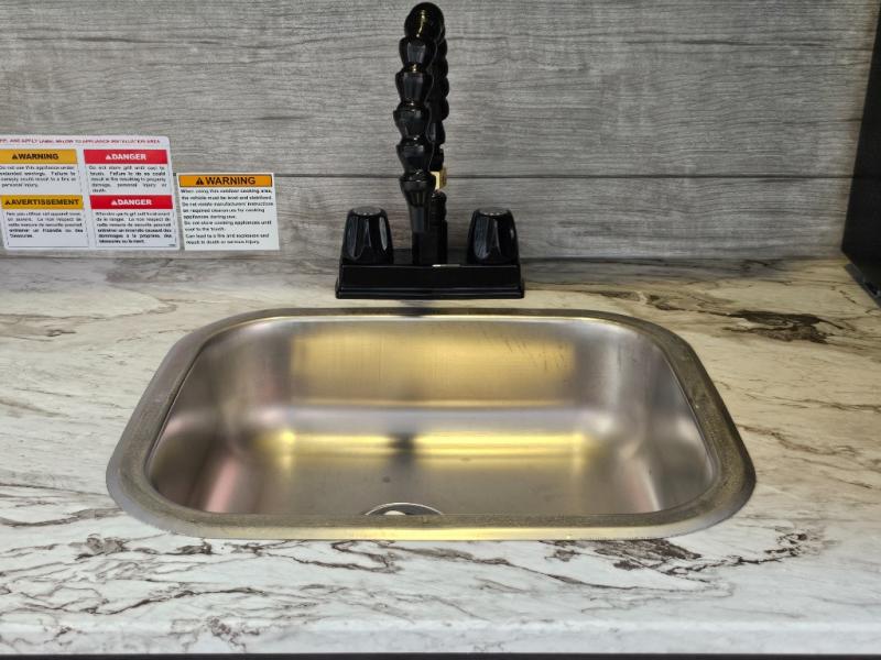 Exterior Campfire Café with refrigerator, griddle, sink, and prep counter
