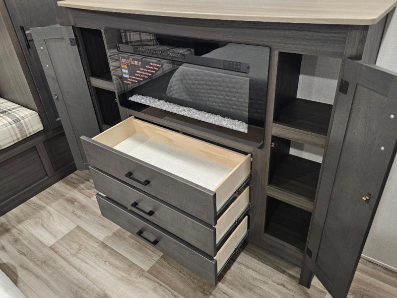 The SportTrek STT336VRK is built for RVers who want luxury, comfort, and smart design in a rear kitchen floorplan. With dual fireplaces, a king bedroom suite, premium indoor finishes, and an outdoor Campfire Café, this travel trailer delivers a refined camping experience with the space and functionality to enjoy every trip in style.