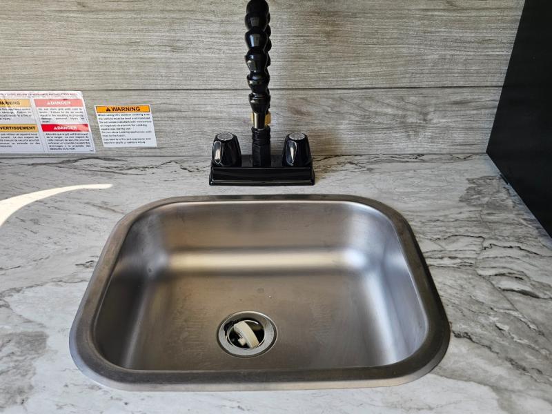 Campfire Café with sink, griddle, countertop space, and mini refrigerator