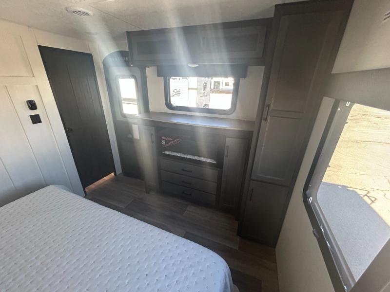 An elegant design and new features come with every one of these Venture RV SportTrek Touring Edition travel trailers! The NXG Huck bolt frame holds these units together and a walkable roof covers them. Heads will turn down the highway and at the campsite with an upgraded graphics package and a painted fiberglass front cap with integrated LED light. The exterior pass-through storage area has slam latch baggage doors with magnetic catches so you don't have to worry about them closing on you and a motion activated light to see your items clearly even at night. Luxury abounds throughout these units, especially with the mandatory Interior Luxury package which comes with solid surface kitchen countertops, designer valances with fabric nightshades, two 30" frameless fireplaces, and Beauflor wood plank flooring that is easy to clean. Come find your favorite model today!
