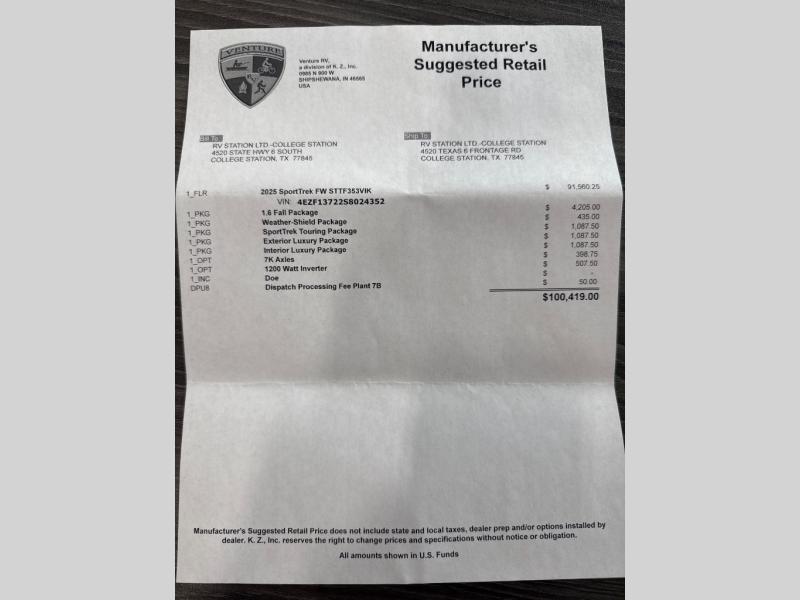 New 2025 Venture RV SportTrek Touring Edition STTF353VIK Fifth Wheel