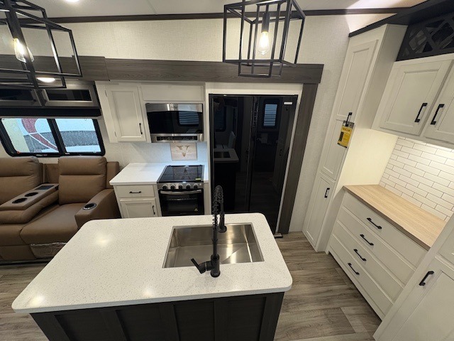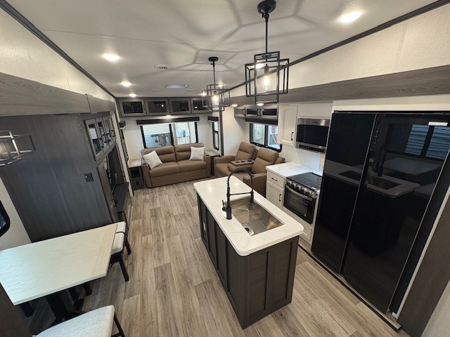 Luxury Rear Living 5th Wheel with Outside Kitchen and Entertainment Center!