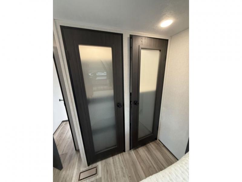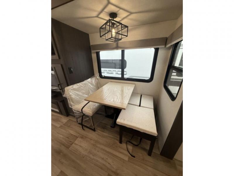 An elegant design and new features come with every one of these Venture RV SportTrek Touring Edition fifth wheels! The NXG Huck bolt frame holds these units together and Tufflex PVC roofing covers them. Heads will turn down the highway and at the campsite with the frameless tinted windows and high gloss fiberglass front cap with automotive paint. The exterior pass-through storage area has slam latch baggage doors with magnetic catches so you don't have to worry about them closing on you and LED lighting on the electric awning so you can see clearly even at night. Luxury abounds throughout these units, especially with the two fireplaces, solid surface kitchen countertops, blackout roller shades, and maximum storage designs. Come find your favorite model today!