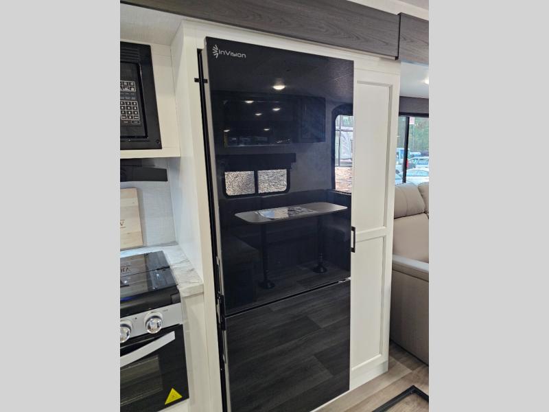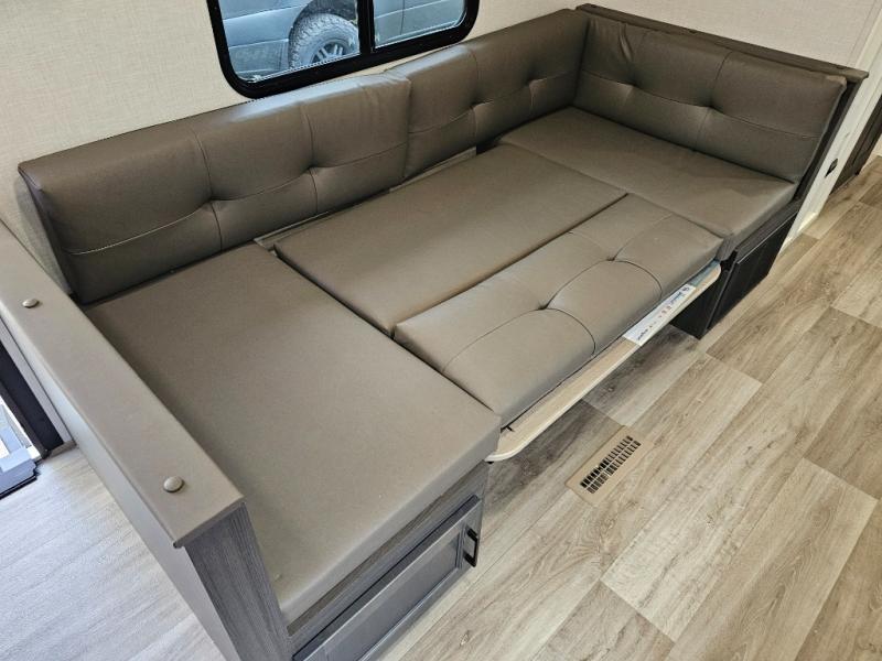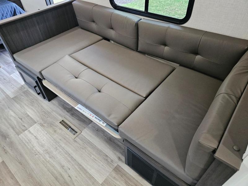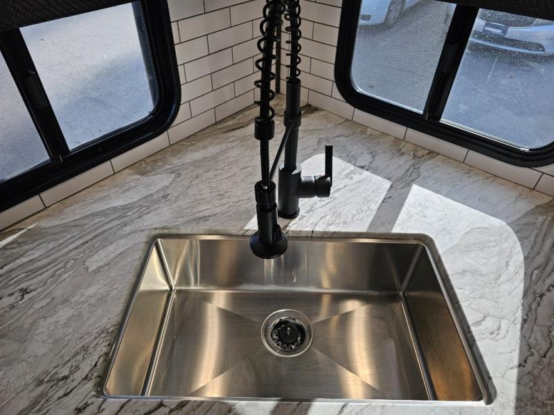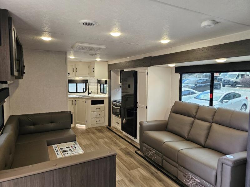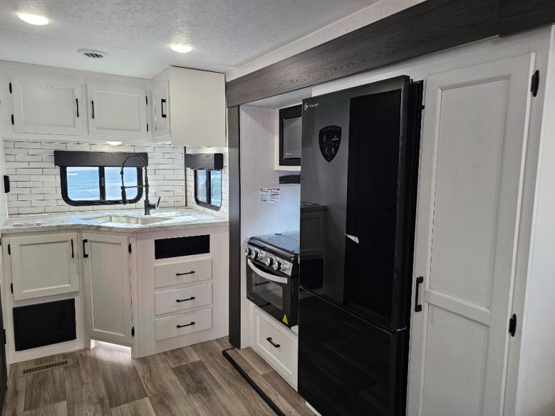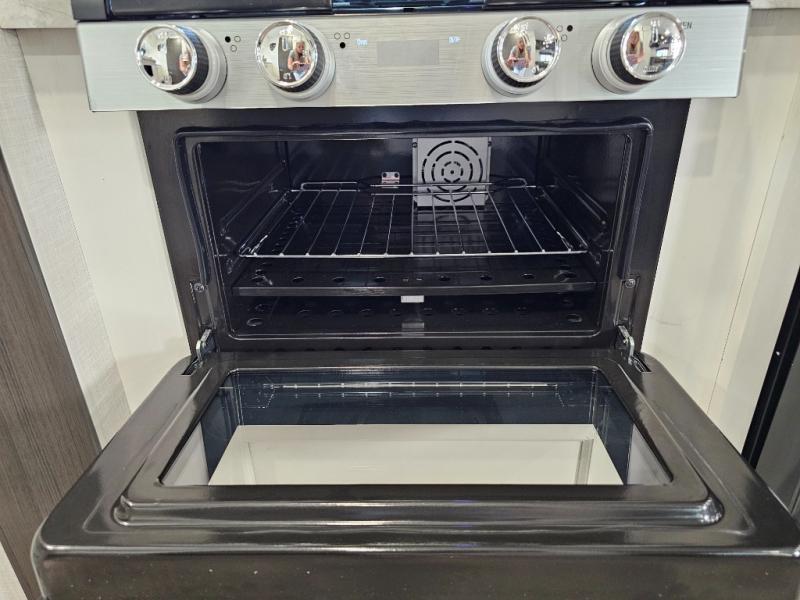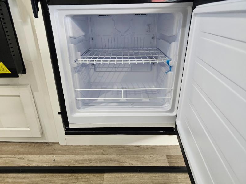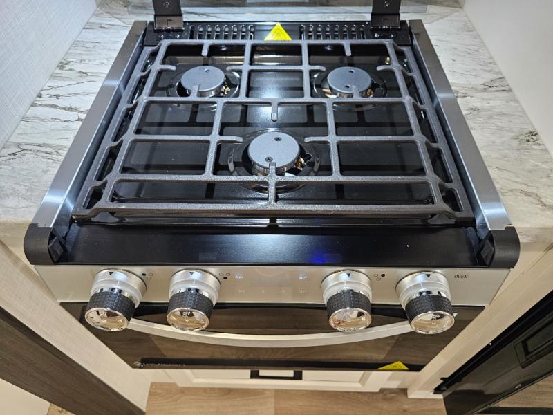 - Well-Equipped Kitchen: The kitchen area features a 10 cu. ft. refrigerator, three-burner cooktop, and ample counter space, making it easy to prepare meals on the road.