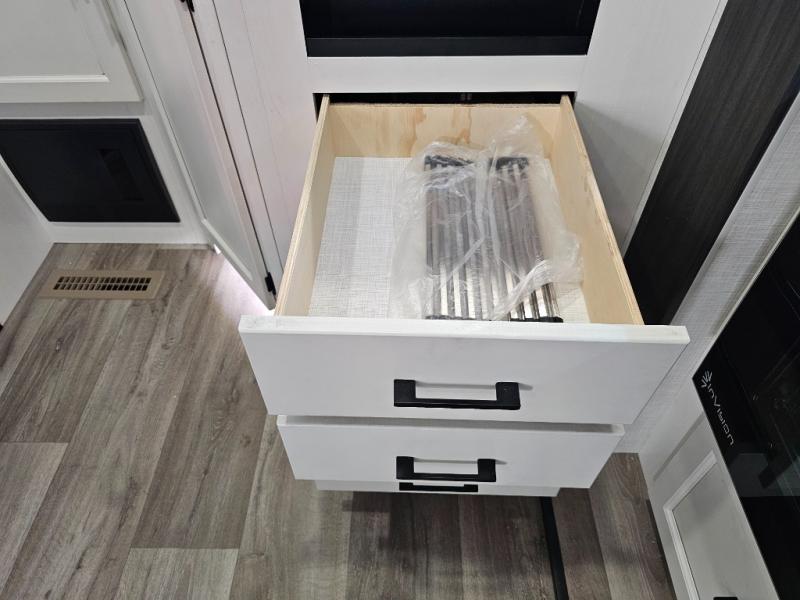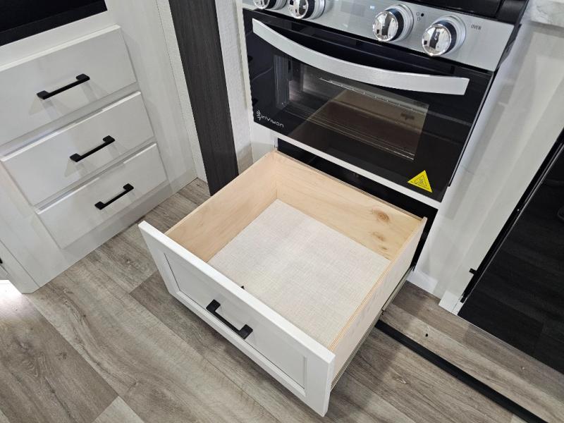 - Pass-Through Storage: Spacious exterior storage allows you to bring along outdoor gear, sports equipment, and camping essentials with easy access from either side of the trailer.