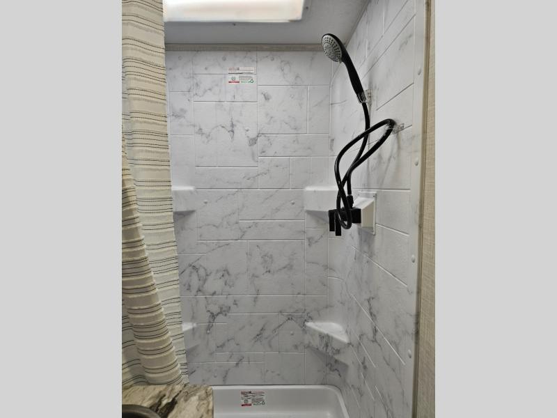 - Rear Corner Bathroom: Features a 30" x 36" shower, providing privacy and convenience.