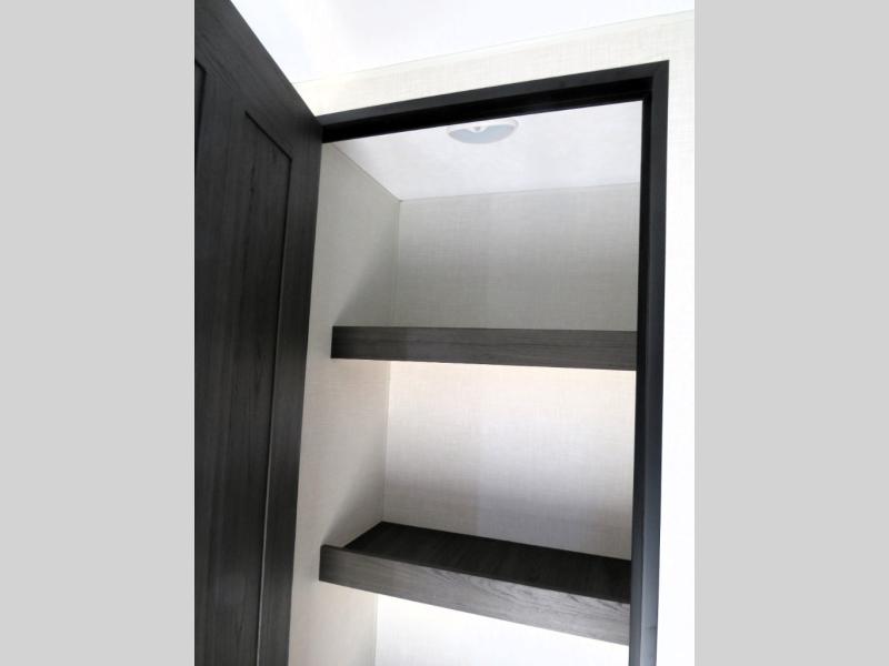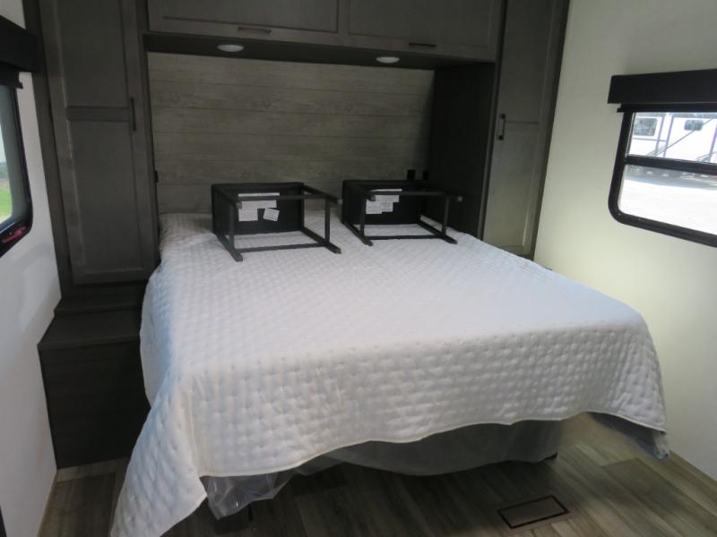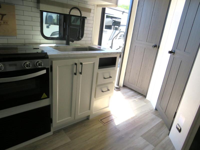This travel trailer is perfect for two people who wish to escape the hustle and bustle of everyday life! You will enjoy a good night's rest on the sleep tight queen bed with shelves and wardrobes on either side to hang your clothes, and if you want an extra guest or two to tag along then you can transform the 88" x 42" U-shaped dinette into an extra sleeping space. Everyone will stay clean and refreshed with a rear corner bathroom that has a 34" radius shower. Grab your dry goods from the walk-in pantry, your perishables from the 10 cu. ft. refrigerator, and cook them all on the three burner cooktop. The bar top with two bar stools is the perfect place to enjoy your morning coffee and eggs!