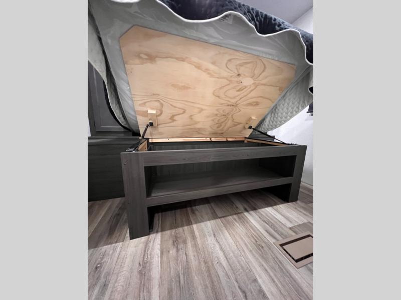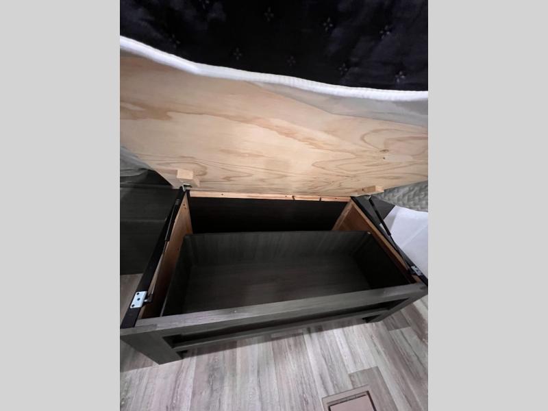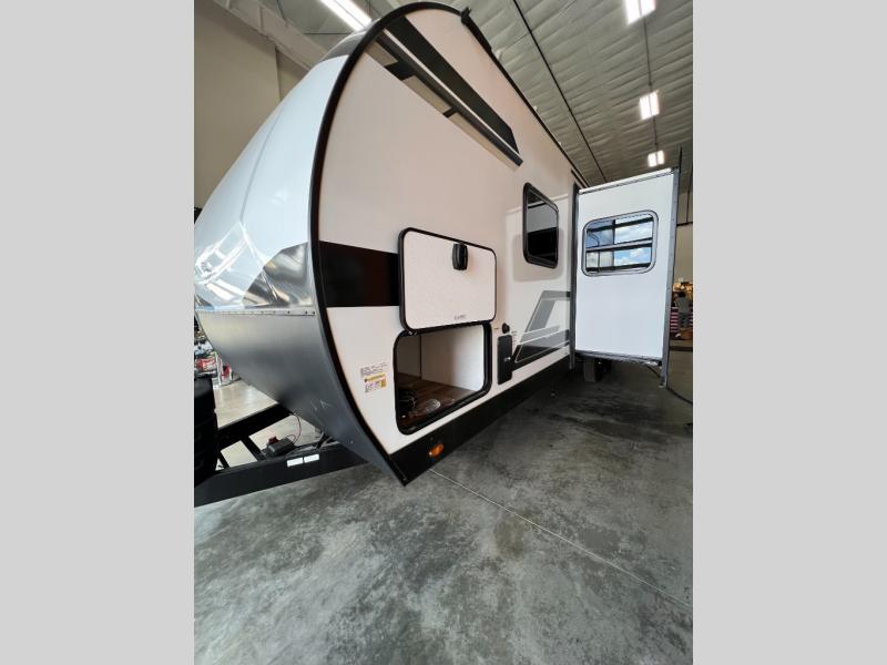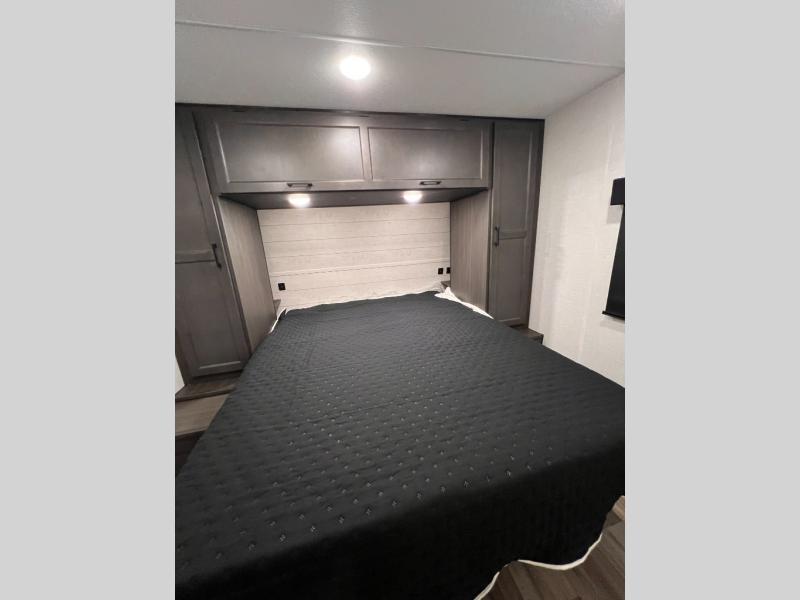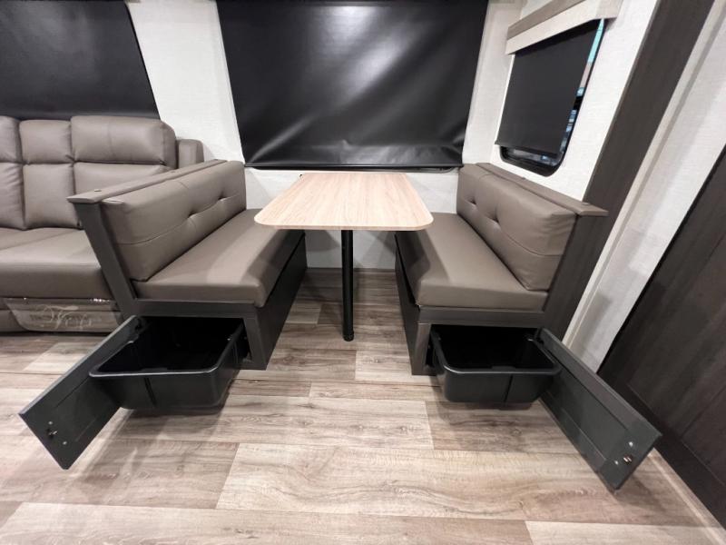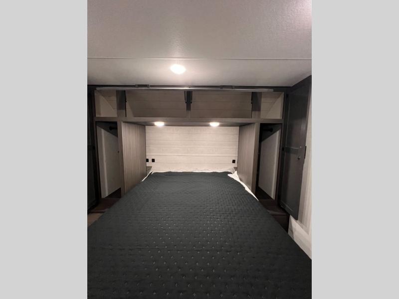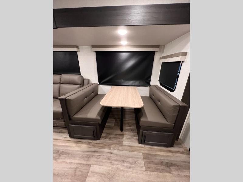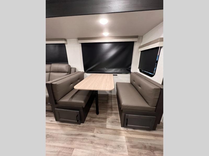 This feature-packed model offers a smart layout with double-over-double bunks, a private front bedroom, and a spacious slide-out living area, giving everyone room to spread out and relax. The modern interior design, LED lighting, and panoramic windows create an open, inviting atmosphere that feels like home on the road.