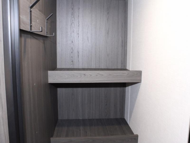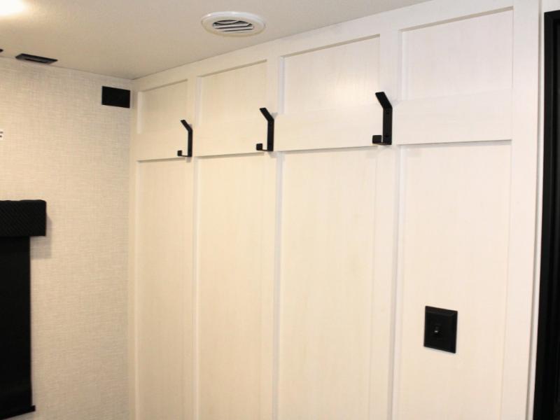 Plus, a walk-in pantry tucked behind the entertainment center includes coat hooks and loads of shelf space—so your food, gear, and jackets are always within reach.