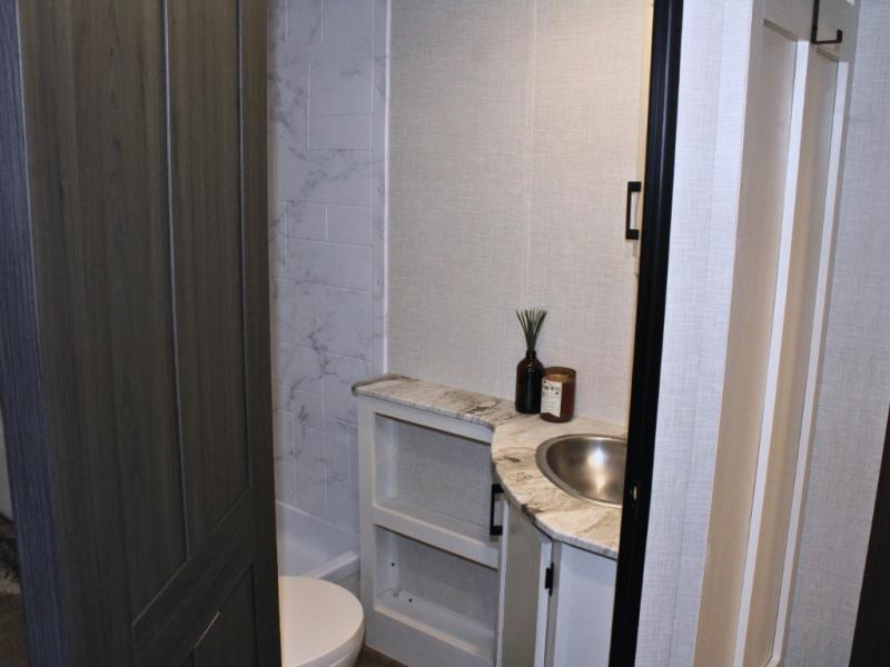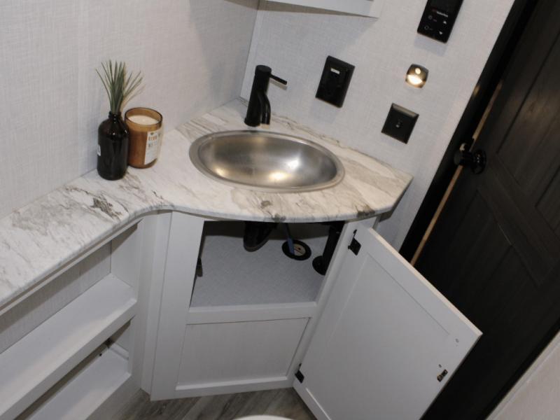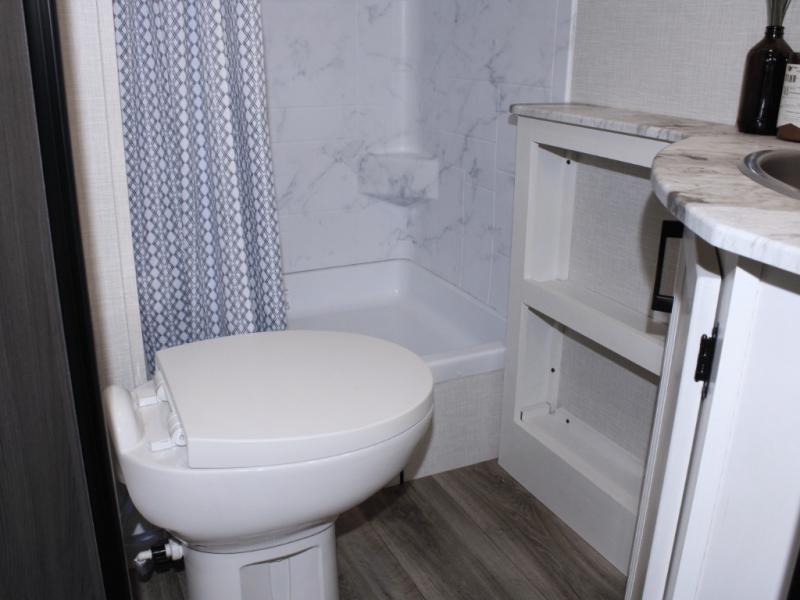 Need to freshen up? The rear corner bathroom includes a spacious 30" x 36" shower, making cleanup after a day of hiking, swimming, or exploring quick and easy.