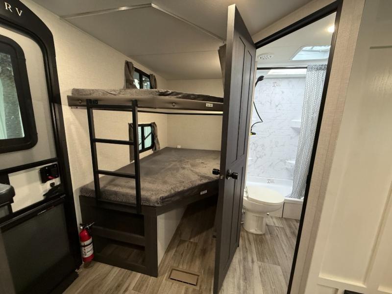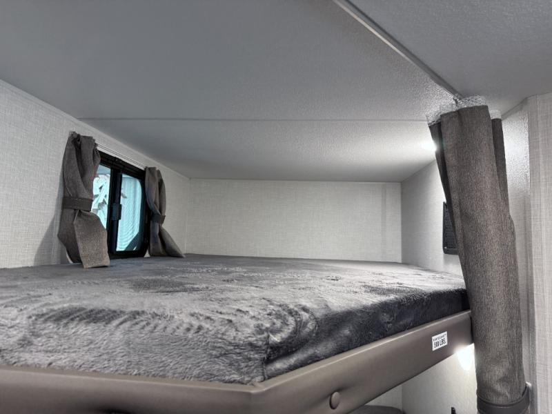 The Venture RV Stratus Ultra-Lite SR281VBH is built for family adventures with comfort and convenience in mind. The front private bedroom features a Sleep Tight queen bed and dual wardrobes for your clothing and essentials. Kids will love the 51" x 75" double bed bunks, and extra guests can sleep on the 70" sofa or the 42" booth dinette when converted into beds.
