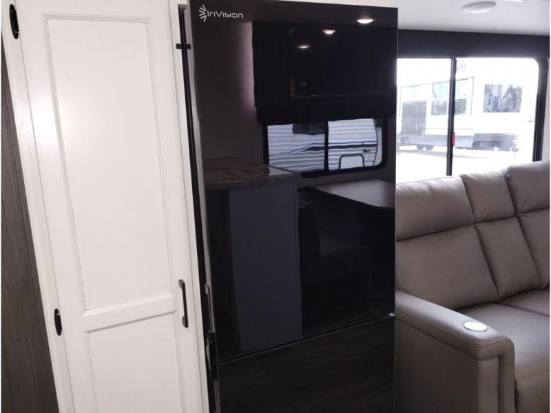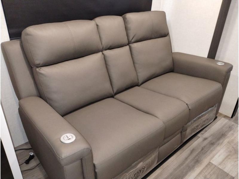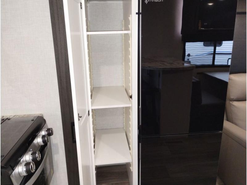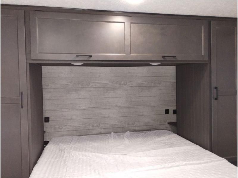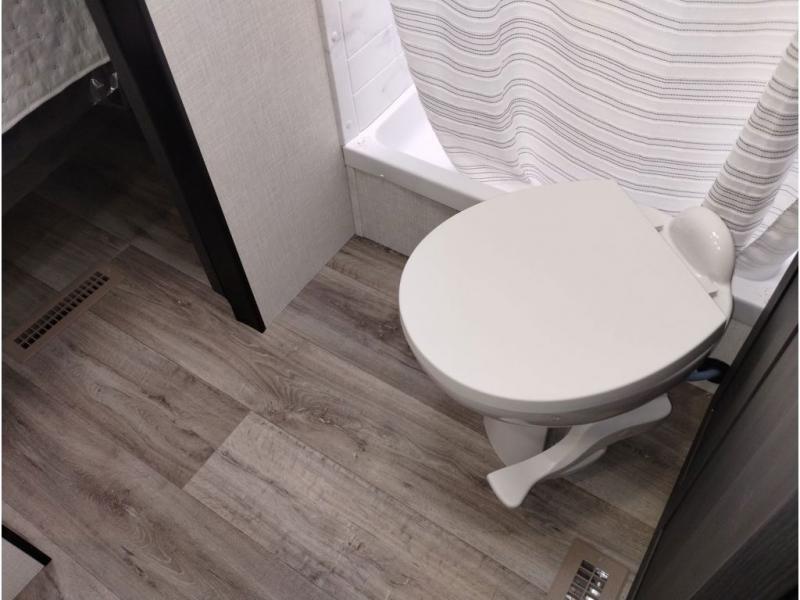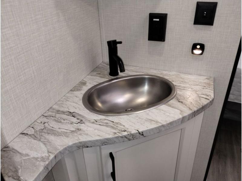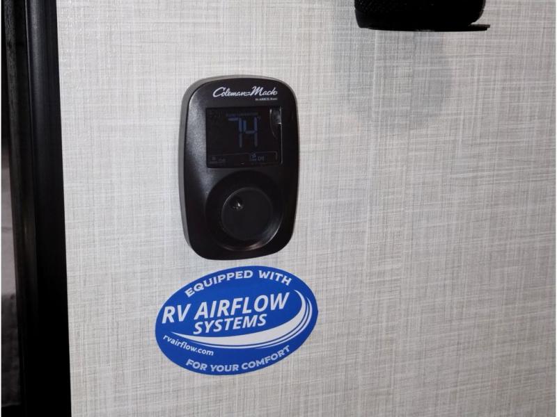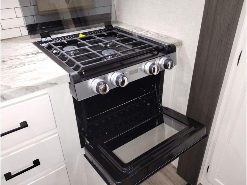 Sleep tight on the road! This travel trailer is special for four. First we have the 60" x 80" queen bed, and two people can easily fit on the sit n' slide dinette. Cook delicious dinner in the incredible kitchen. The counter includes a stainless steel sink with cover and dish drying racks, three cooktop burner, and an overhead cabinet. There is also a 10 cu. fridge and pantry for food storage. You can also have a relaxing time on the theater seating with USB port on each side. Store your belongings in the dual wardrobe beside the bed and also on the pass thru storage. Finally, take a relaxing bath in the walk thru bathroom furnished with a 30" x 36" shower.