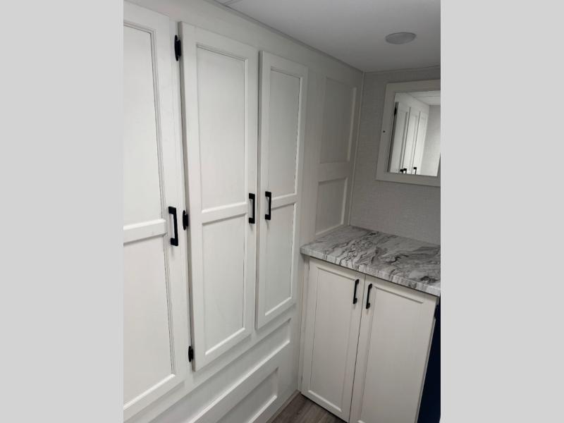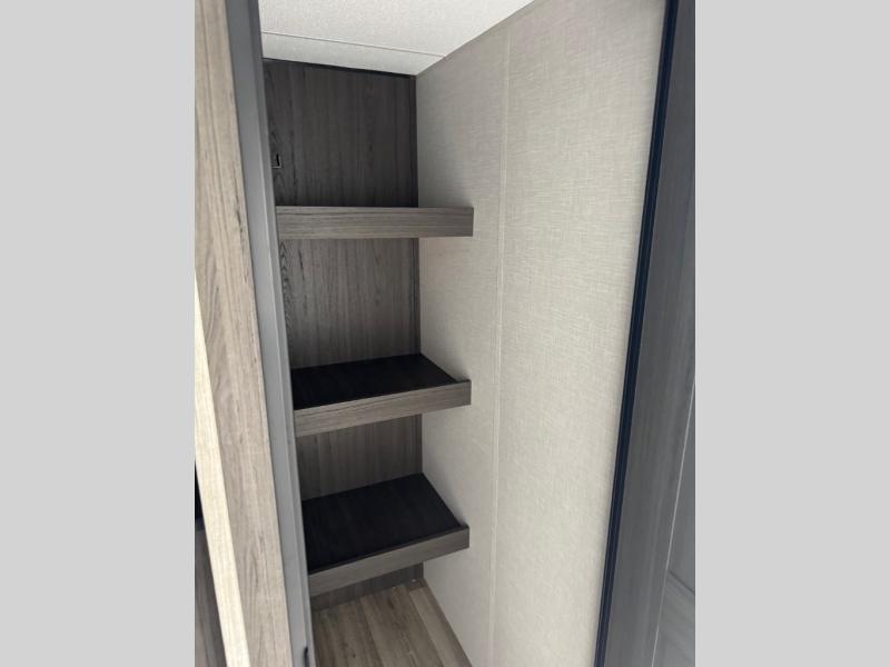 You're going to feel right at home in this Stratus single slide unit! There is not only a fully equipped kitchen with a three burner cooktop, but also an outside campfire café with a griddle, refrigerator, sink, and even an exterior 40" TV for your entertainment. As you enter the unit, you will notice to the right a walk-in pantry with coat hooks, and to the left is the full rear bathroom with a 30" x 36" shower, a three door linen closet, and a cabinet prepped to add an optional washer and dryer. If mother nature rains on your parade then relax inside on either the 70" sofa or the sit n' slide table dinette across from the entertainment center.