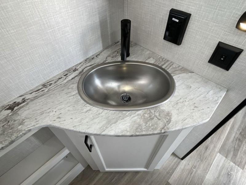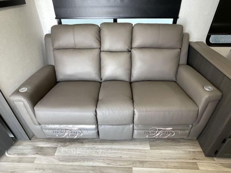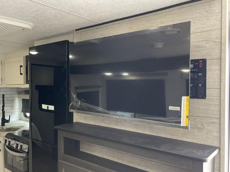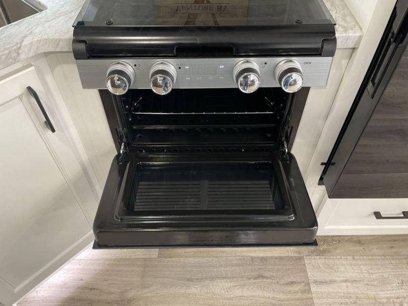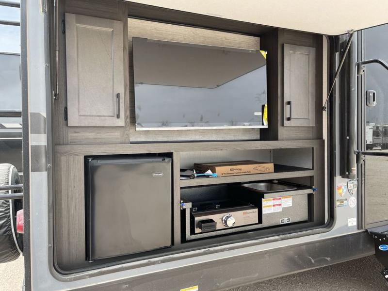 You're going to feel right at home in this Stratus single slide unit! There is not only a fully equipped kitchen with a three burner cooktop, but also an outside campfire café with a griddle, refrigerator, sink, and even an exterior 40" TV for your entertainment. As you enter the unit, you will notice to the right a walk-in pantry with coat hooks, and to the left is the full rear bathroom with a 30" x 36" shower, a three door linen closet, and a cabinet prepped to add an optional washer and dryer. If mother nature rains on your parade then relax inside on either the 70" sofa or the sit n' slide table dinette across from the entertainment center.