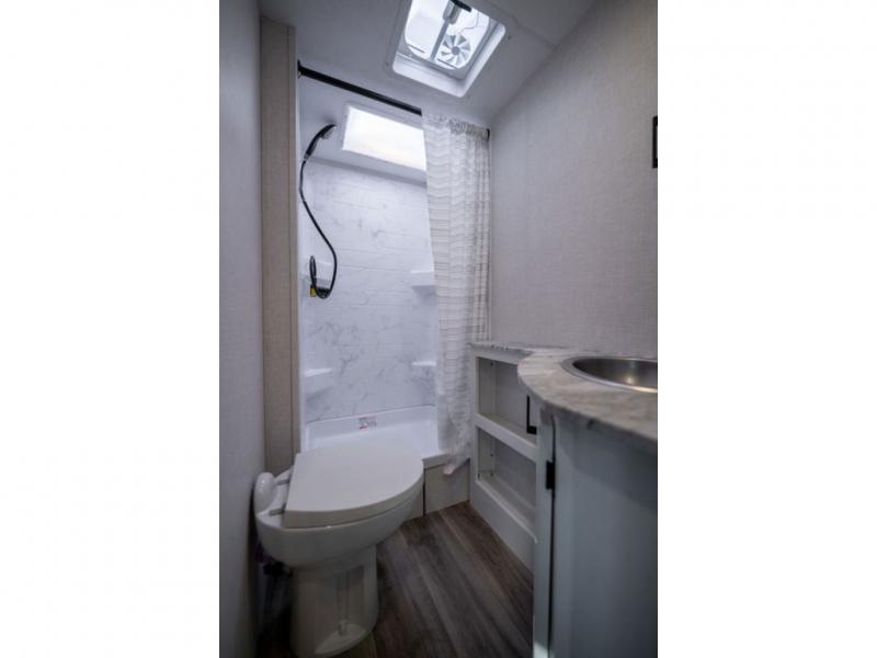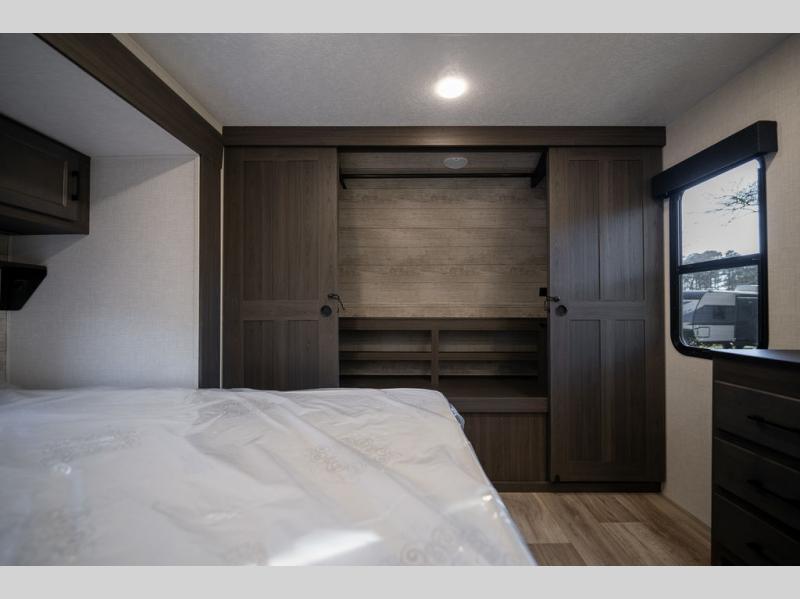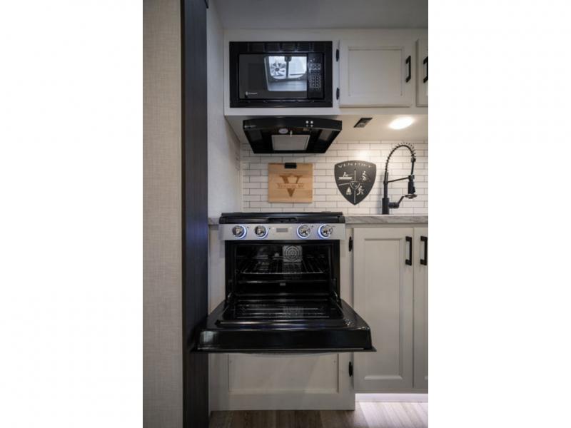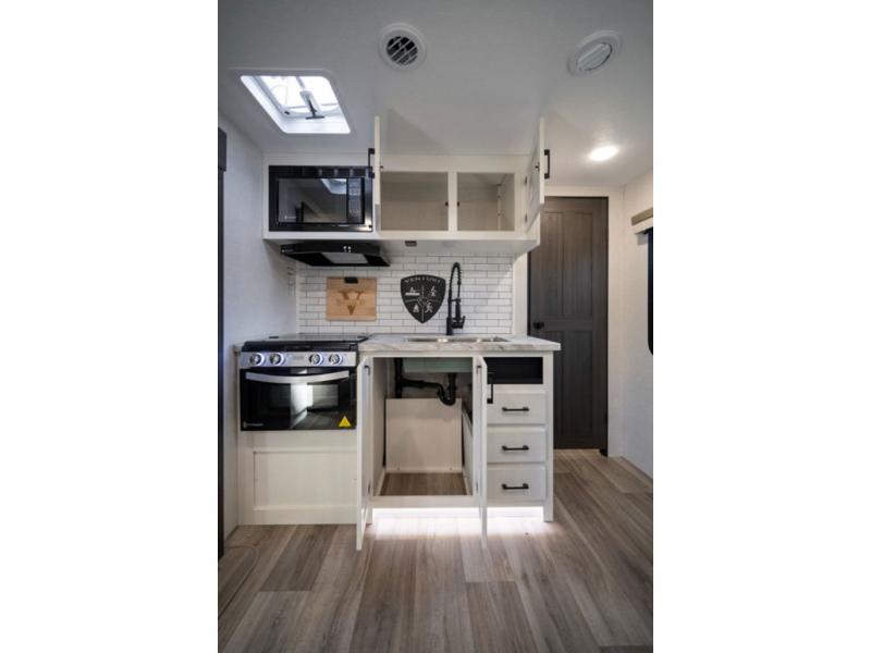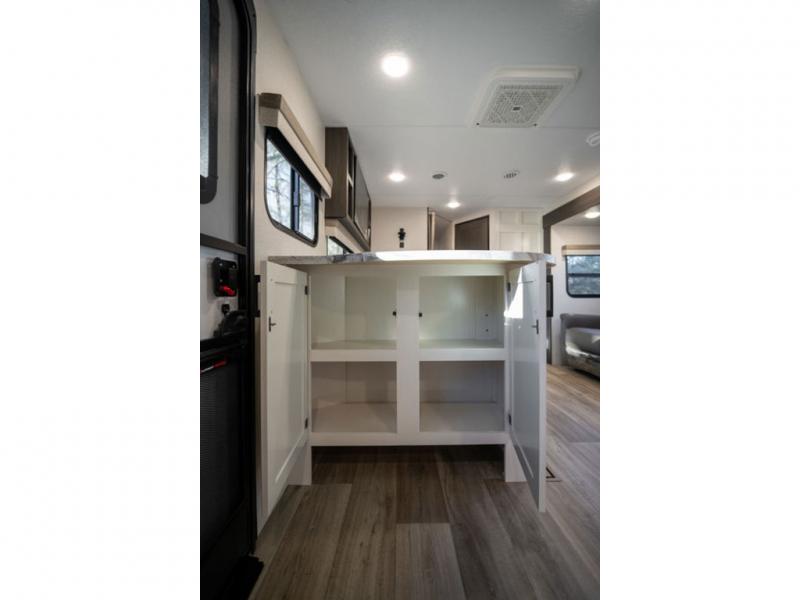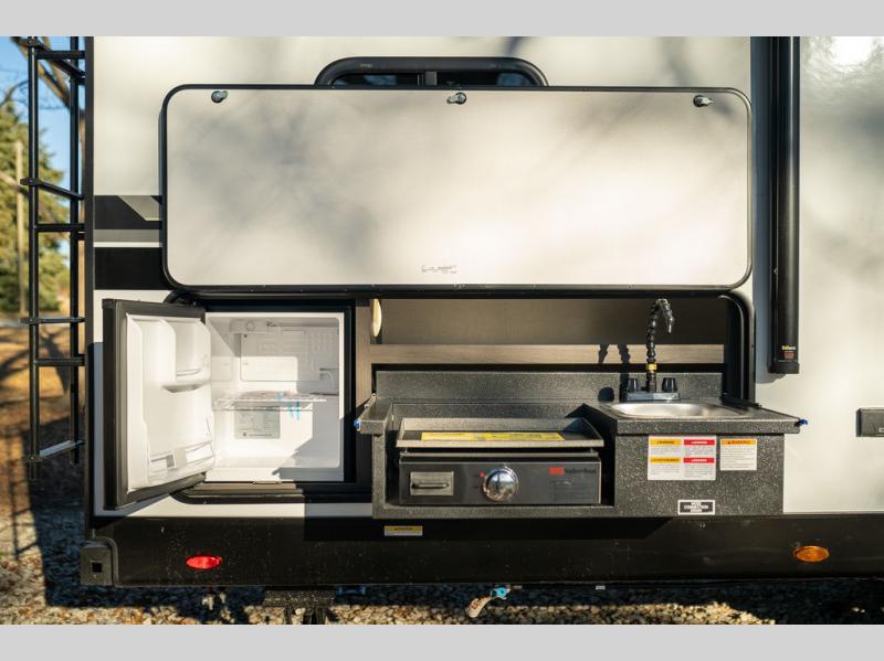 Sleep tight with your family on the road! This travel trailer is special for the whole family since it has plenty of space for sleep. First we have the 60" x 80" queen bed, the 51" x 75" double size bunk bed, you can also two people on the sit n' slide dinette and one more on the 70" sofa. Cook delicious dinner in the incredible kitchen. It includes stainless steel sink with cover and dish drying racks, three cooktop burner, 10 cu. refrigerator, pantry and an over head cabinet. However you can also have an amazing cooking time outside thanks to the outdoor kitchen, ideal ideal to share a meal with your family while enjoying nature and its surroundings. Store your belongings in the large closet beside the bed and also in the pass thru storage. Finally, take a relaxing bath in the full bathroom furnished with a 30" x 36" shower.