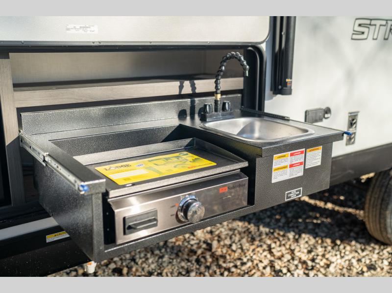 Each one of these Venture RV Stratus Ultra-Lite travel trailers have an eye-catching exterior! The exclusive JBL Flip Bluetooth Speaker is easy and user friendly with your smartphone at the touch of a button. Azdel composite panels are 50% lighter than wood, prevent mold, mildew, rotting, and warping, are unaffected by temperature and humidity changes, have a superior thermal insulation, and superior sound absorption, plus there is no formaldehyde. Experience the next generation in RV frame technology with the NXG frame which is constructed with high strength low alloy prime steel and has been track tested to prove its durability. These units also have an award winning NXG slide technology for years of trouble-free performance!