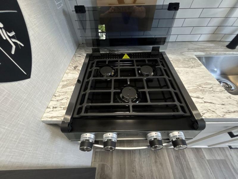 Sleep tight with your family on the road! This travel trailer is special for the whole family since it has plenty of space for sleep. First we have the 60" x 80" queen bed, the 51" x 75" double size bunk bed, you can also two people on the sit n' slide dinette and one more on the 70" sofa. Cook delicious dinner in the incredible kitchen. It includes stainless steel sink with cover and dish drying racks, three cooktop burner, 10 cu. refrigerator, pantry and an over head cabinet. However you can also have an amazing cooking time outside thanks to the outdoor kitchen, ideal ideal to share a meal with your family while enjoying nature and its surroundings. Store your belongings in the large closet beside the bed and also in the pass thru storage. Finally, take a relaxing bath in the full bathroom furnished with a 30" x 36" shower.