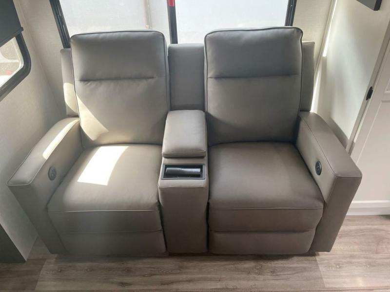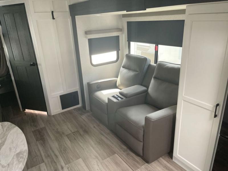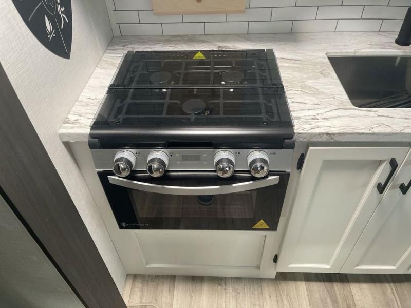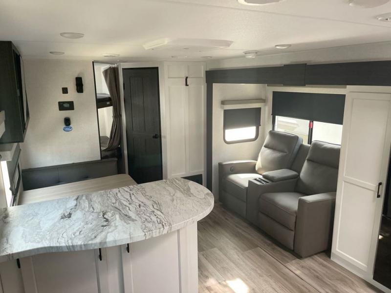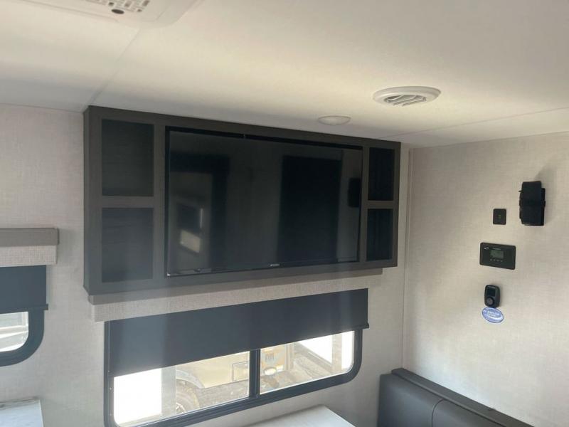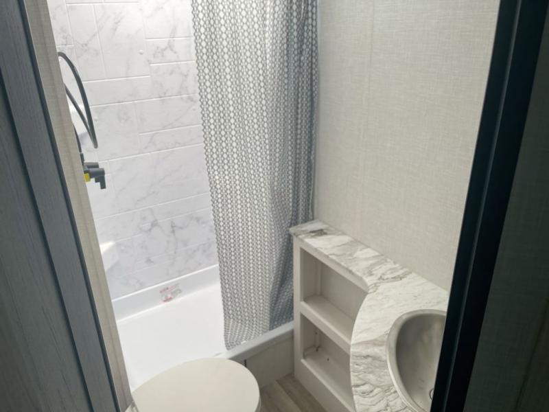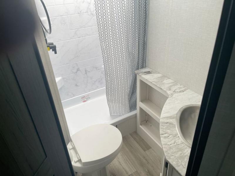 Sleep tight with your family on the road! This travel trailer is special for the whole family since it has plenty of space for sleep. First we have the 60" x 80" queen bed, the 51" x 75" double size bunk bed, you can also two people on the sit n' slide dinette and one more on the 70" sofa. Cook delicious dinner in the incredible kitchen. It includes stainless steel sink with cover and dish drying racks, three cooktop burner, 10 cu. refrigerator, pantry and an over head cabinet. However you can also have an amazing cooking time outside thanks to the outdoor kitchen, ideal ideal to share a meal with your family while enjoying nature and its surroundings. Store your belongings in the large closet beside the bed and also in the pass thru storage. Finally, take a relaxing bath in the full bathroom furnished with a 30" x 36" shower.