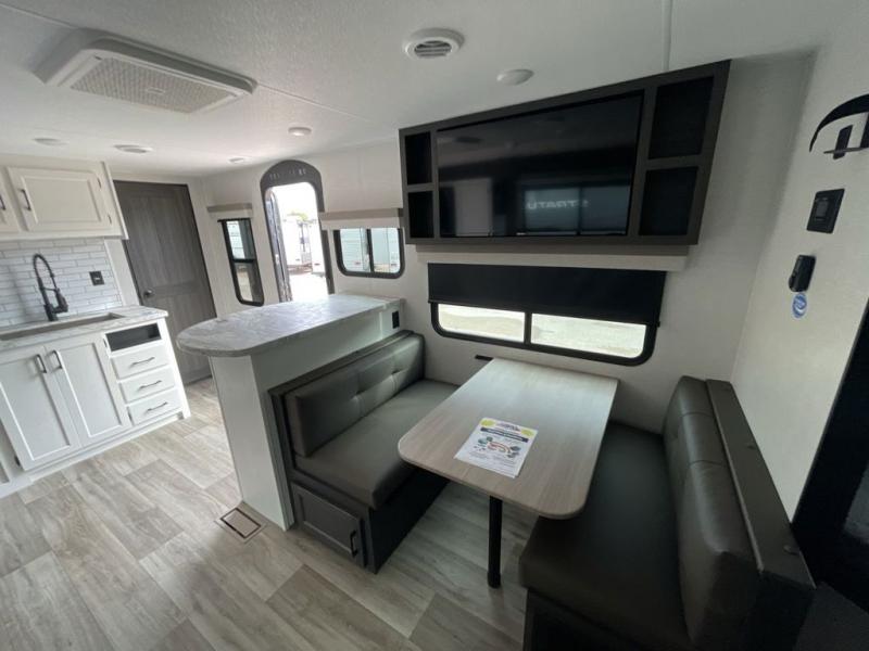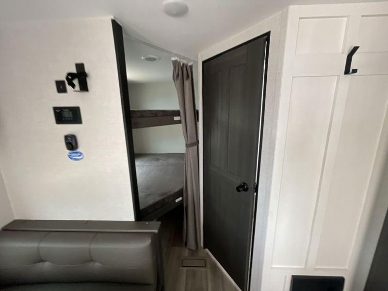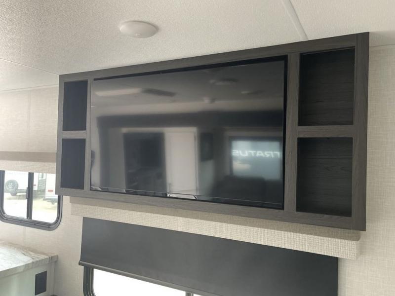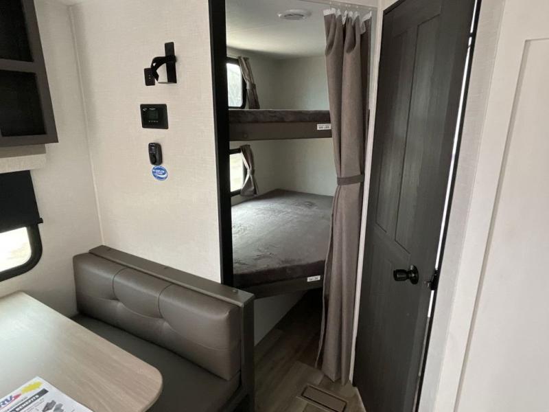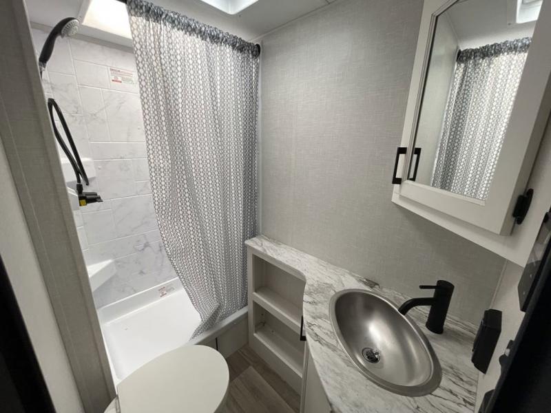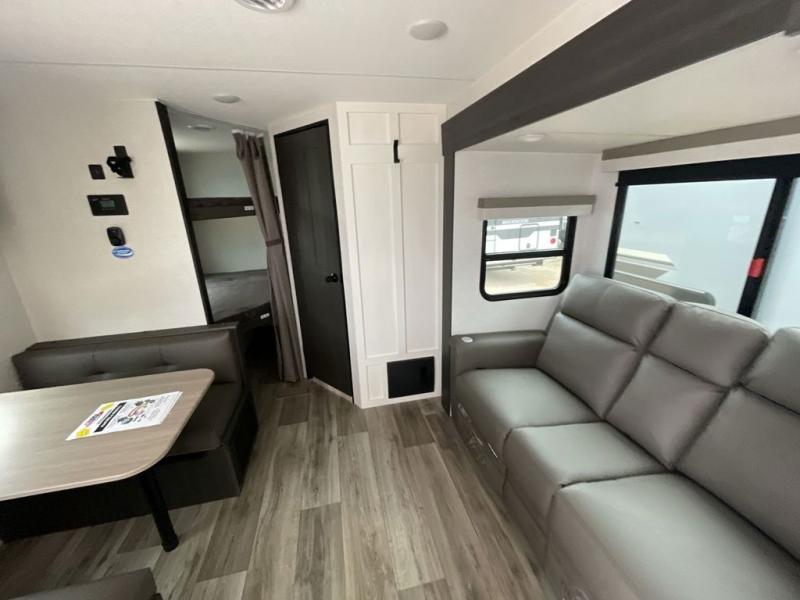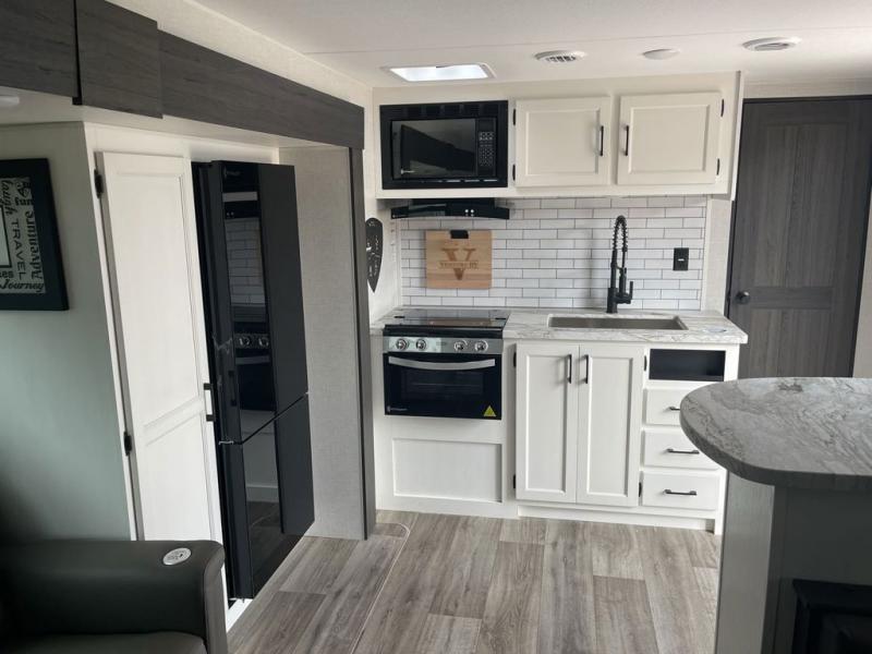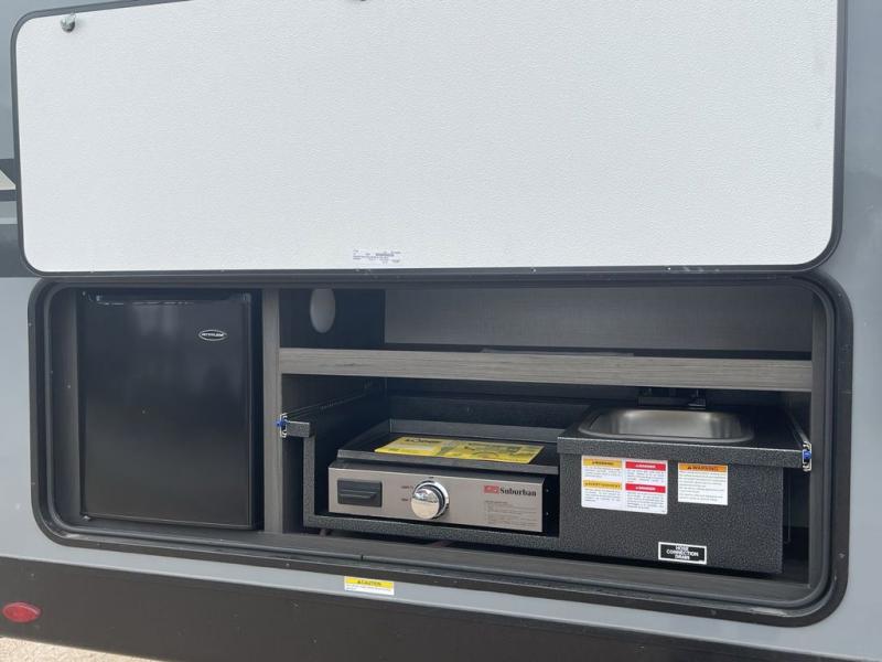 Sleep tight with your family on the road! This travel trailer is special for the whole family since it has plenty of space for sleep. First we have the 60" x 80" queen bed, the 51" x 75" double size bunk bed, you can also two people on the sit n' slide dinette and one more on the 70" sofa. Cook delicious dinner in the incredible kitchen. It includes stainless steel sink with cover and dish drying racks, three cooktop burner, 10 cu. refrigerator, pantry and an over head cabinet. However you can also have an amazing cooking time outside thanks to the outdoor kitchen, ideal ideal to share a meal with your family while enjoying nature and its surroundings. Store your belongings in the large closet beside the bed and also in the pass thru storage. Finally, take a relaxing bath in the full bathroom furnished with a 30" x 36" shower.