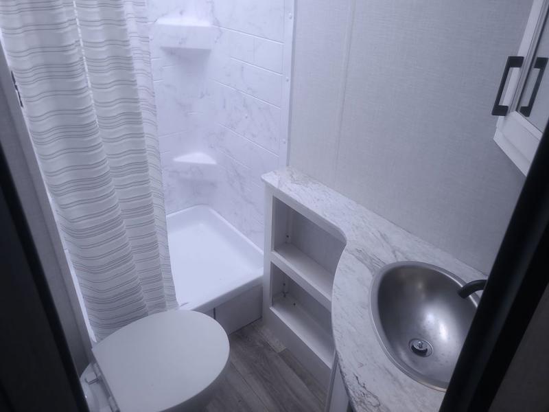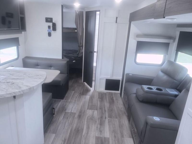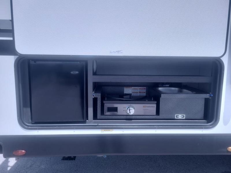 Sleep tight with your family on the road! This travel trailer is special for the whole family since it has plenty of space for sleep. First we have the 60" x 80" queen bed, the 51" x 75" double size bunk bed, you can also two people on the sit n' slide dinette and one more on the 70" sofa. Cook delicious dinner in the incredible kitchen. It includes stainless steel sink with cover and dish drying racks, three cooktop burner, 10 cu. refrigerator, pantry and an over head cabinet. However you can also have an amazing cooking time outside thanks to the outdoor kitchen, ideal ideal to share a meal with your family while enjoying nature and its surroundings. Store your belongings in the large closet beside the bed and also in the pass thru storage. Finally, take a relaxing bath in the full bathroom furnished with a 30" x 36" shower.