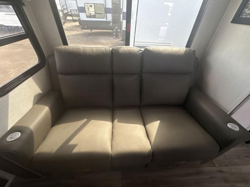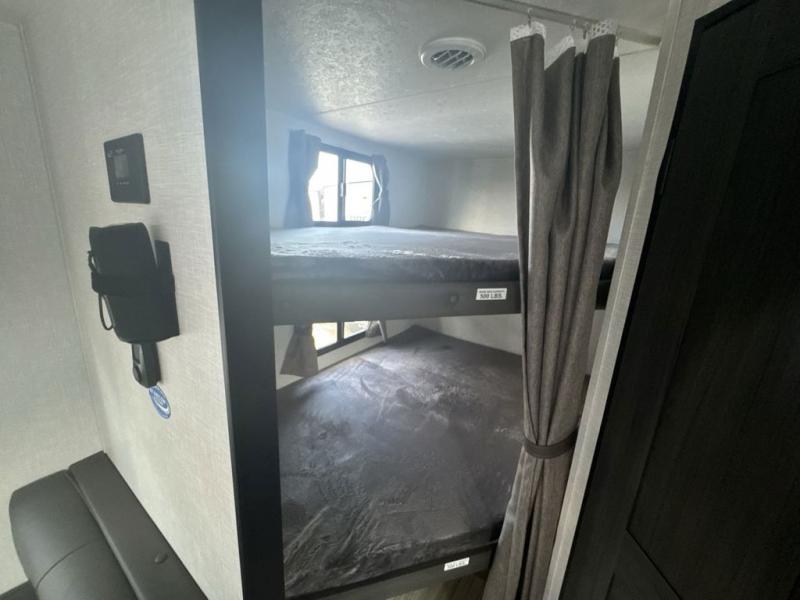 Sleep tight with your family on the road! This travel trailer is special for the whole family since it has plenty of space for sleep. First we have the 60" x 80" queen bed, the 51" x 75" double size bunk bed, you can also two people on the sit n' slide dinette and one more on the 70" sofa. Cook delicious dinner in the incredible kitchen. It includes stainless steel sink with cover and dish drying racks, three cooktop burner, 10 cu. refrigerator, pantry and an over head cabinet. However you can also have an amazing cooking time outside thanks to the outdoor kitchen, ideal ideal to share a meal with your family while enjoying nature and its surroundings. Store your belongings in the large closet beside the bed and also in the pass thru storage. Finally, take a relaxing bath in the full bathroom furnished with a 30" x 36" shower.