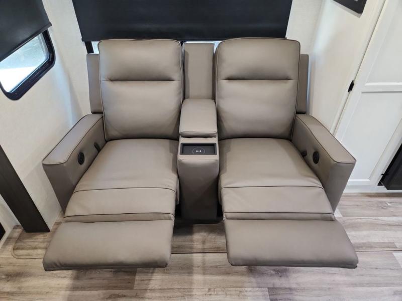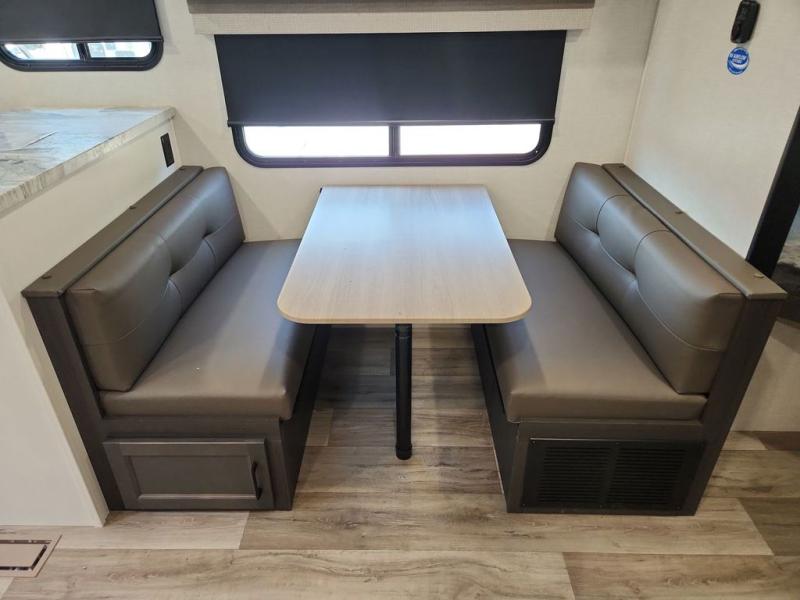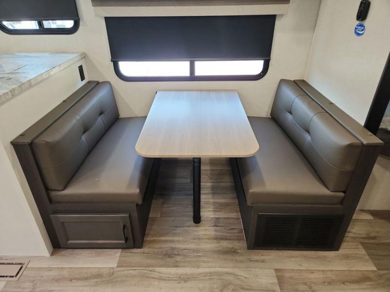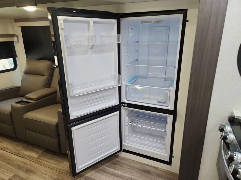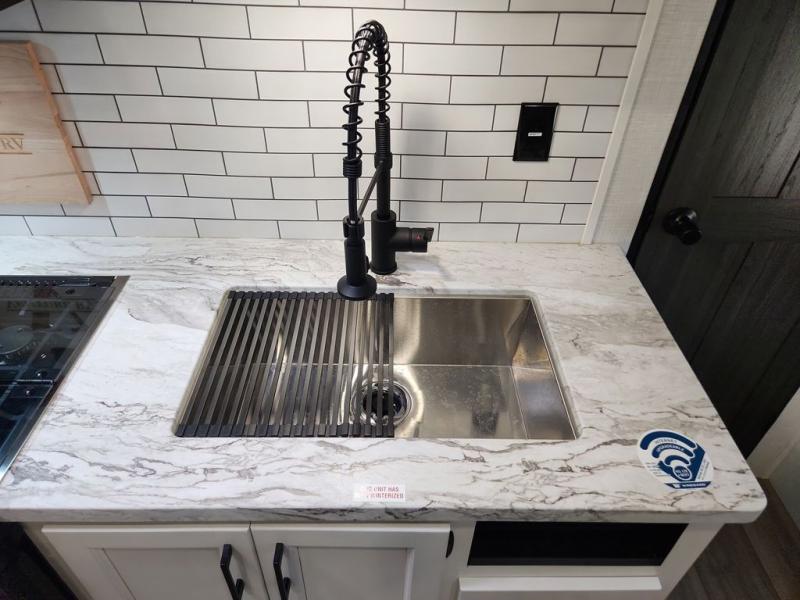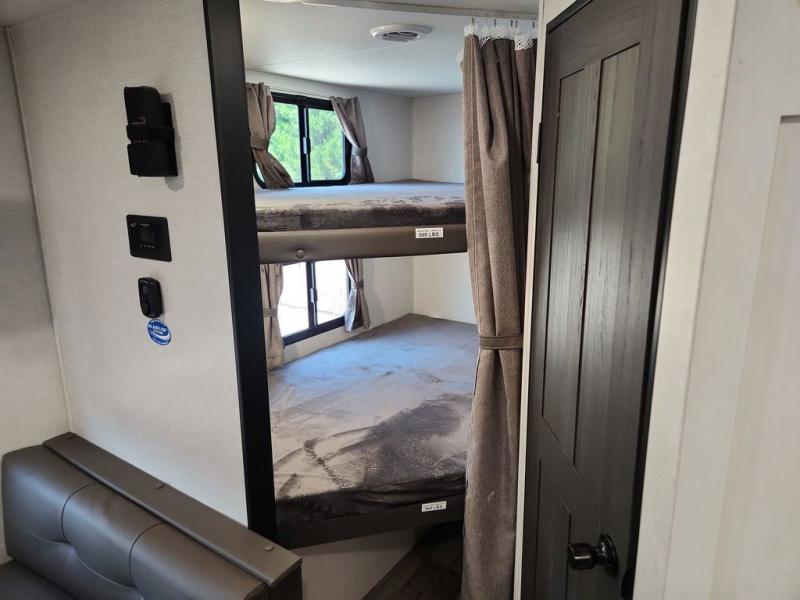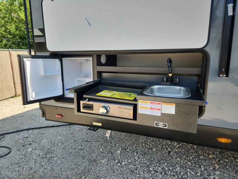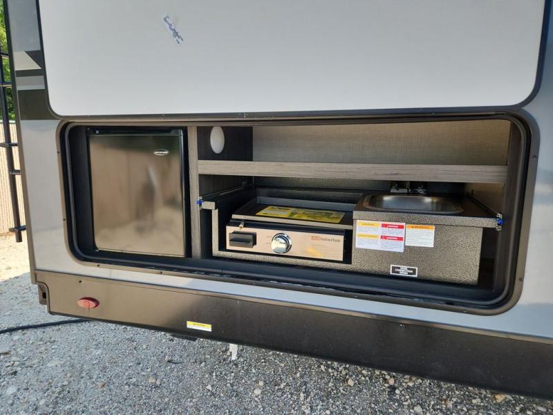 Sleep tight with your family on the road! This travel trailer is special for the whole family since it has plenty of space for sleep. First we have the 60" x 80" queen bed, the 51" x 75" double size bunk bed, you can also two people on the sit n' slide dinette and one more on the 70" sofa. Cook delicious dinner in the incredible kitchen. It includes stainless steel sink with cover and dish drying racks, three cooktop burner, 10 cu. refrigerator, pantry and an over head cabinet. However you can also have an amazing cooking time outside thanks to the outdoor kitchen, ideal ideal to share a meal with your family while enjoying nature and its surroundings. Store your belongings in the large closet beside the bed and also in the pass thru storage. Finally, take a relaxing bath in the full bathroom furnished with a 30" x 36" shower.