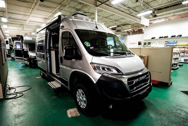 The Roadtrek Westfalia Class B gas motorhome is built on the Ram ProMaster 3500 chassis, offering reliability and safety. The stylish interior is Euro-inspired with black and white seats. The Uconnect HD radio with Apple Car Play and Android Auto includes a 10.1" display so you can easily see your route. Technology features like a wireless charging pad, 4G LTE Wi-Fi hotspot, and multiple integrated USB charging ports mean you can stay in touch, but you'll also love disconnecting as you gaze up at the stars. Outside you'll find a 13' power awning to protect you from the sun or rain, heavy-duty bug screens on all doors, and an outside shower for cleaning up after an outdoor adventure!