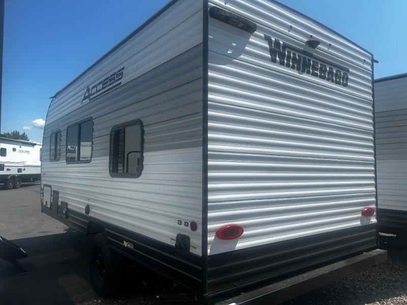 With any Winnebago Access travel trailer you will find thoughtful, clean, and contemporary designs filled with premium features that all have come to expect on any Winnebago towable. You will appreciate the stylish exterior aerodynamic front profile and durable sidewall metal for greater aerodynamics plus strength and durability. With a fully enclosed underbelly that comes with radiant foil insulation, you can easily extend your camping season into the colder months without worrying about having frozen pipes. On the inside, a foot flush toilet, roller shades, abundant storage, and spacious living areas making every camping trip more enjoyable. Make your choice today and Access your next adventure!