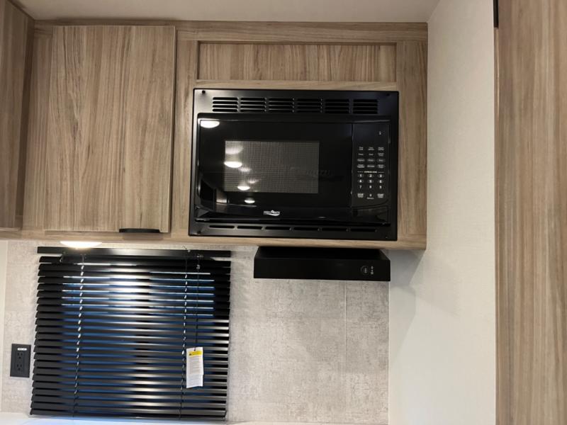 Enjoy generations of fun in this travel trailer! The front 60" x 80" queen bed offers a comfortable place to lay your head at night and a shirt closet to hang your clothes. You can even transform the 64" flip-out sofa and 38" x 68" booth dinette into extra sleeping space. The rear corner kitchen has everything you need to prepare a delicious home cooked meal and a 10 cu. ft. refrigerator to store any leftovers. After a fun-filled day, head to the rear corner bathroom to freshen up in the 30" x 36" shower with 14" x 22" skylight to let in some natural lighting!