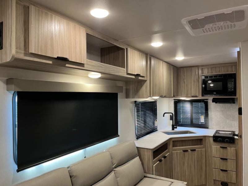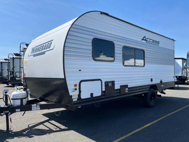 With any Winnebago Access travel trailer you will find thoughtful, clean, and contemporary designs filled with premium features that all have come to expect on any Winnebago towable. You will appreciate the stylish exterior aerodynamic front profile and thicker sidewall metal for greater aerodynamics plus strength and durability. With a fully enclosed underbelly that comes with radiant foil insulation, you can easily extend your camping season into the colder months without worrying about having frozen pipes. On the inside, a porcelain toilet, larger skylights for more natural lighting, abundant storage, and spacious living areas making every camping trip more enjoyable. Make your choice today and Access your next adventure!