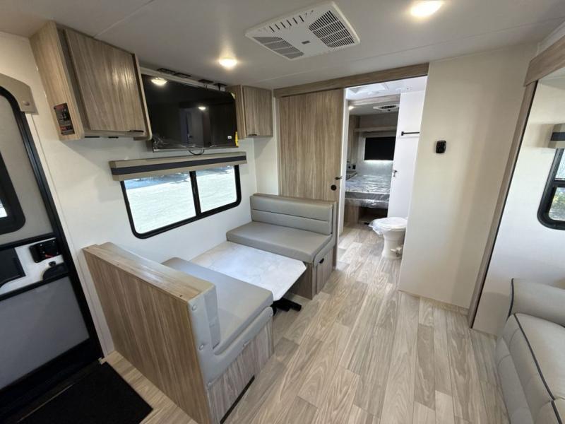 With any Winnebago Access travel trailer you will find thoughtful, clean, and contemporary designs filled with premium features that all have come to expect on any Winnebago towable. You will appreciate the stylish exterior aerodynamic front profile and durable sidewall metal for greater aerodynamics plus strength and durability. With a fully enclosed underbelly that comes with radiant foil insulation, you can easily extend your camping season into the colder months without worrying about having frozen pipes. On the inside, a foot flush toilet, roller shades, abundant storage, and spacious living areas making every camping trip more enjoyable. Make your choice today and Access your next adventure!