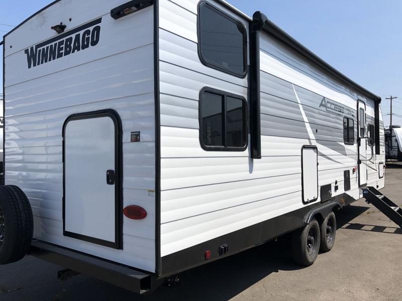 With any Winnebago Access travel trailer you will find thoughtful, clean, and contemporary designs filled with premium features that all have come to expect on any Winnebago towable. You will appreciate the stylish exterior aerodynamic front profile and durable sidewall metal for greater aerodynamics plus strength and durability. With a fully enclosed underbelly that comes with radiant foil insulation, you can easily extend your camping season into the colder months without worrying about having frozen pipes. On the inside, a foot flush toilet, roller shades, abundant storage, and spacious living areas making every camping trip more enjoyable. Make your choice today and Access your next adventure!