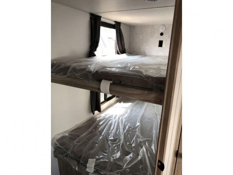 Your family of seven will enjoy camping in this Access camper. You will have the choice of cooking both inside and out with the accessible outdoor kitchen featuring a pull-out griddle and 1.6 cu. ft. refrigerator for drinks. On the inside, a three burner cooktop, pantry for dry goods, and a 10 cu. ft. refrigerator make creating meals and snacks easy. For sleeping, your family will find comfort in a set of 44" x 74" bunks located in a private bunk room with storage cubbies for your belongings, a booth dinette that can also be transformed into sleeping for one or two at night depending on size, plus the front private bedroom which features a queen bed. Besides the dinette for seating, you also have theater seating for two inside. Add an optional TV for movie watching when the weather doesn't cooperate outdoors for fun activities. On the exterior, you will find a convenient Pack-N-Play door beneath the bunks, plus an exterior pass through storage compartment up front for lawn chairs, outdoor games, and so much more.