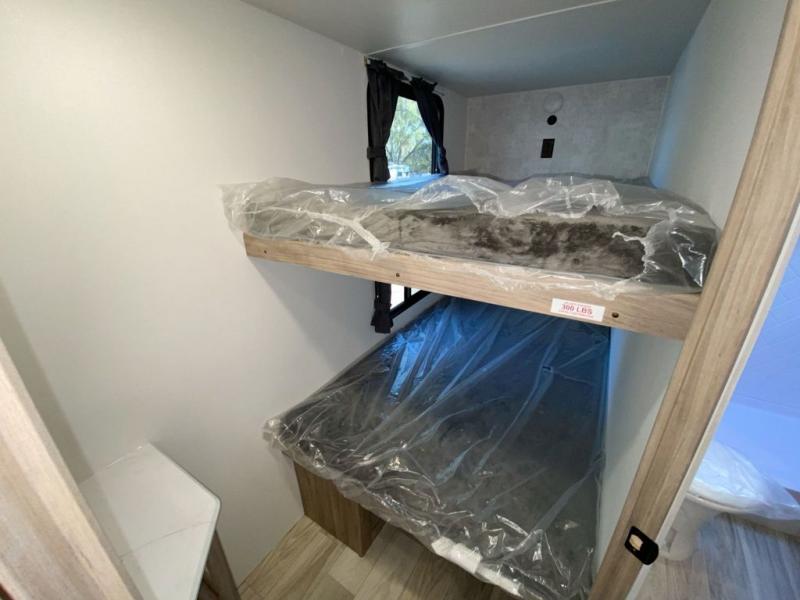 Your family of seven will enjoy camping in this Access camper. You will have the choice of cooking both inside and out with the accessible outdoor kitchen featuring a pull-out griddle and 1.6 cu. ft. refrigerator for drinks. On the inside, a three burner cooktop, pantry for dry goods, and a 10 cu. ft. refrigerator make creating meals and snacks easy. For sleeping, your family will find comfort in a set of 44" x 74" bunks located in a private bunk room with storage cubbies for your belongings, a booth dinette that can also be transformed into sleeping for one or two at night depending on size, plus the front private bedroom which features a queen bed. Besides the dinette for seating, you also have theater seating for two inside. Add an optional TV for movie watching when the weather doesn't cooperate outdoors for fun activities. On the exterior, you will find a convenient Pack-N-Play door beneath the bunks, plus an exterior pass through storage compartment up front for lawn chairs, outdoor games, and so much more.
