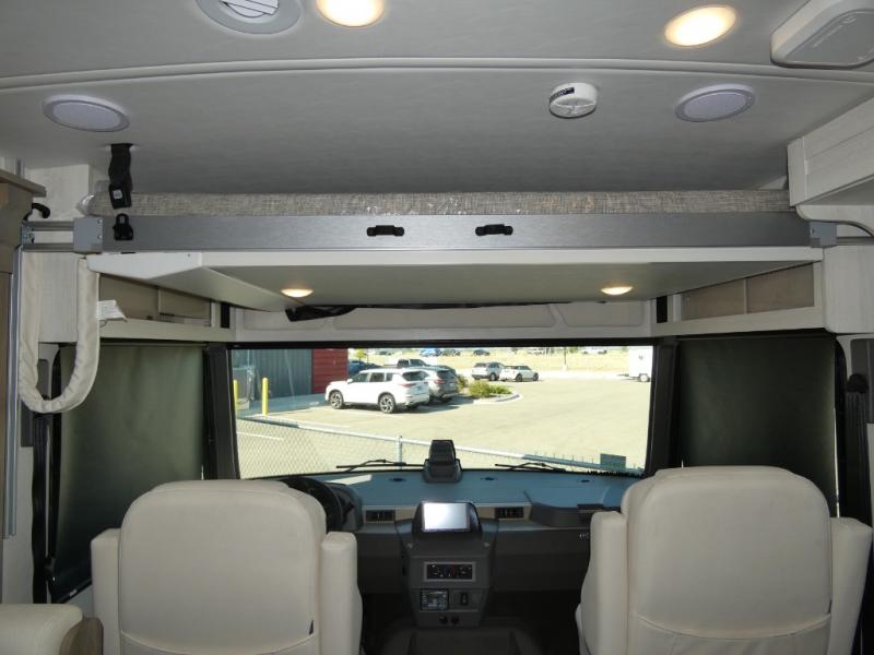 The family-friendly Adventurer Class A gas motorhome by Winnebago is the ultimate family getaway for your trips near and far. The swivel captain's seats include fixed lumbar support and multi-adjustable slide/recline for a truly comfortable ride. You will appreciate the Sony 9" TS radio with Bluetooth, a rearview and sideview monitor system with a color touch screen, SiriusXM ready, and more to make the drive easier than ever. There is also a Driver Confidence Package with added safety features for an overall better driving experience. The powered blackout roller visor/shade on the front windshield will provide privacy when you stop for lunch, and the dash workstation will come in handy when you've got a deadline. Each model includes residential vinyl flooring throughout, a soft vinyl ceiling, a Corian galley countertop, and ceramic tile backsplash. The under-bed storage will provide a place for your luggage, and you'll find lighted storage compartments outside for all your larger gear.
